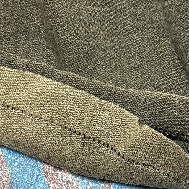 - 全体的に黒ボディ特有のヤケやアタリがみられます。また、袖や、裾付近に変色がみられます。その他、小穴、ダメージ等の年代相応の着用感がみられ、ユーズド慣れされた方や、雰囲気重視の方におすすめの商品です。