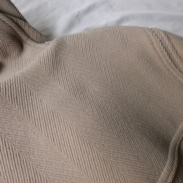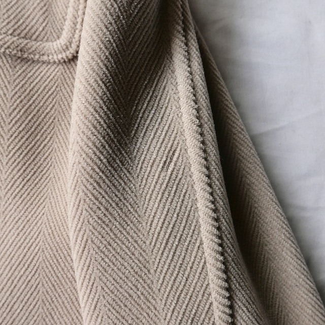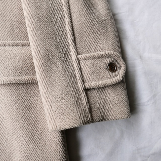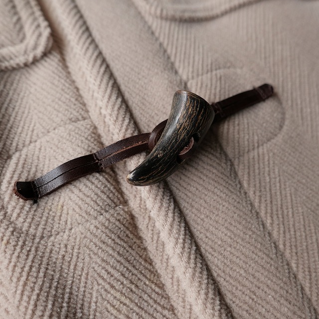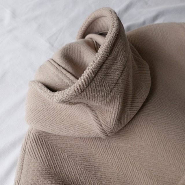 肉厚で軽くフカフカな質感のヘリンボーン生地を使用しており、ダッフルコート=重いというイメージの方が多いと思いますが、この生地を使ったダッフルコートは暖かさはもちろんですが、驚く程軽い着心地。