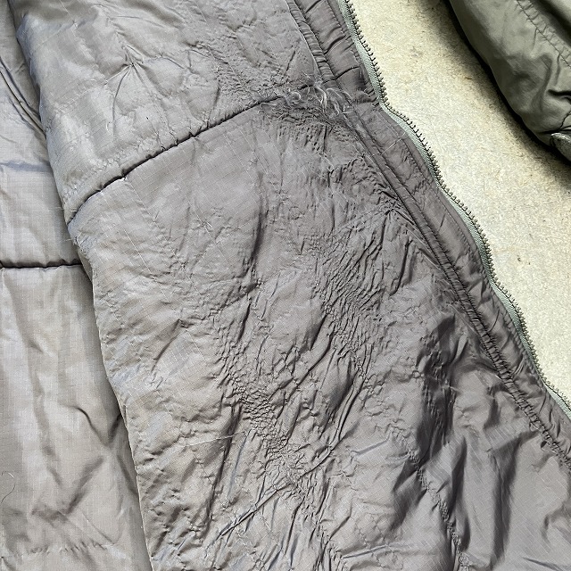 - 両肘当てに多少のスレがみられます。また、所々に画像の様な毛羽立ちや、ほつれがみられます。その他、着用感ございますが、ユーズド慣れされた方でしたら、まだまだ問題なく着用していただけます。