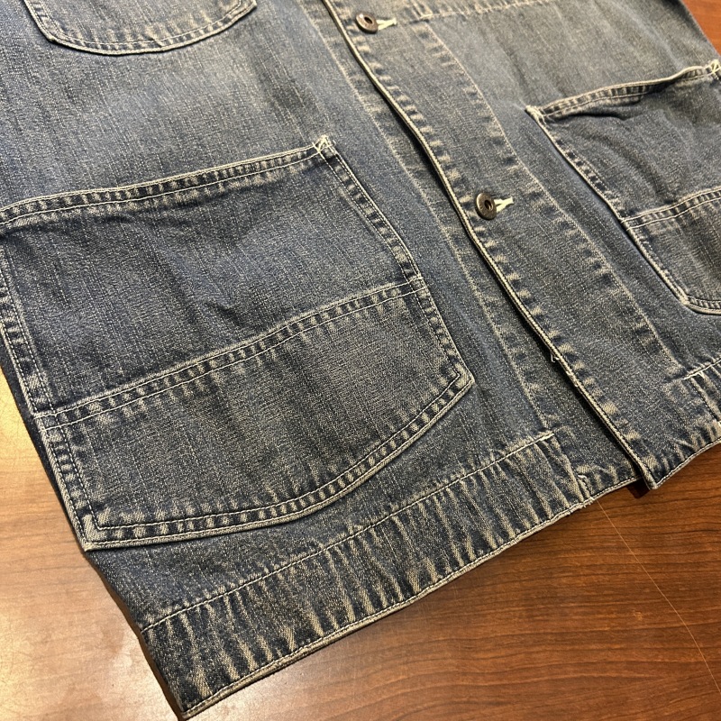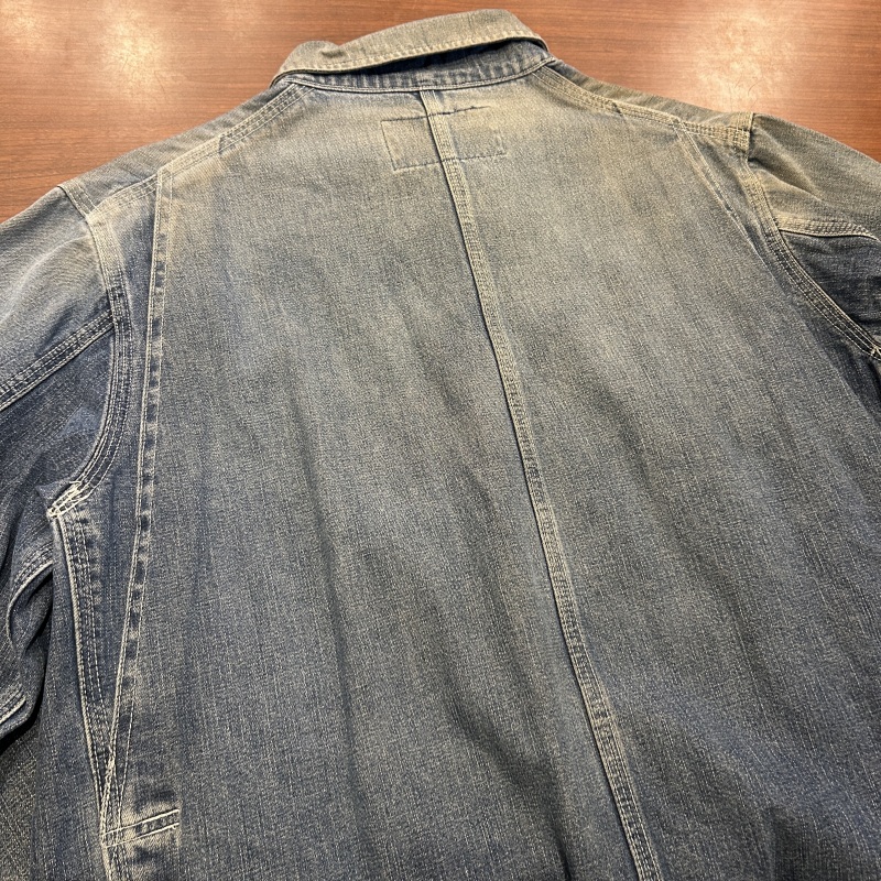 - デニム特有の色落ちやアタリ等の着用感がございますが、その他に目立つ汚れやダメージ等は無く、まだまだ問題無く着用していただける状態です。