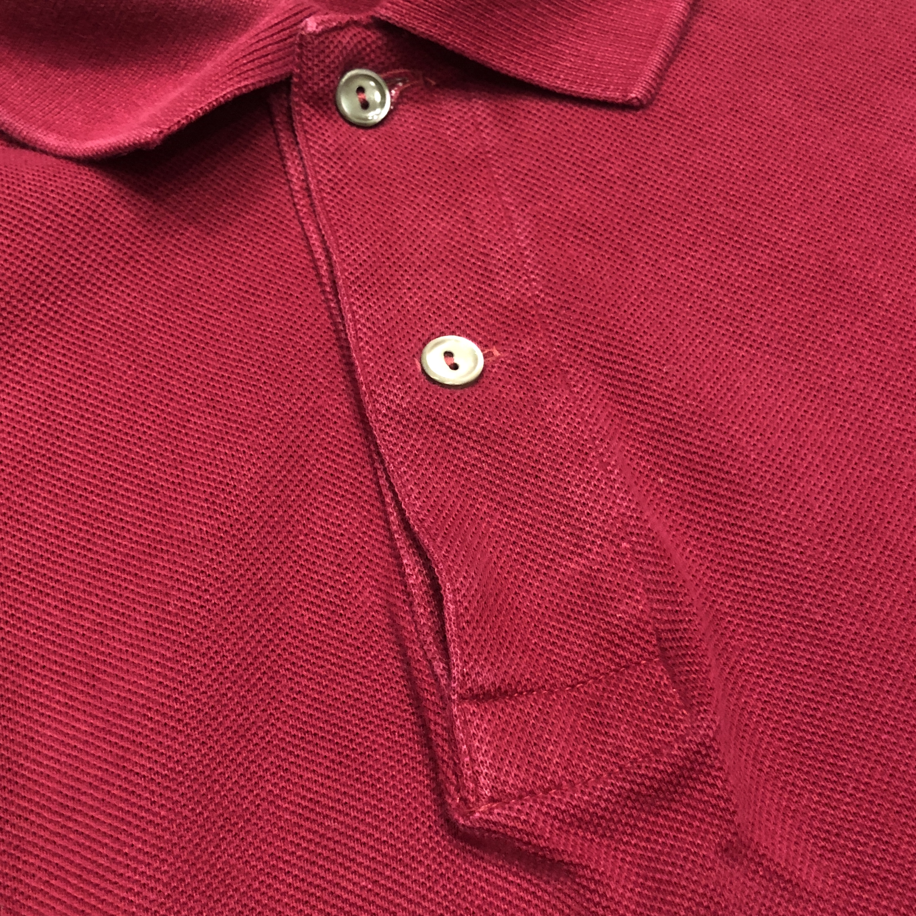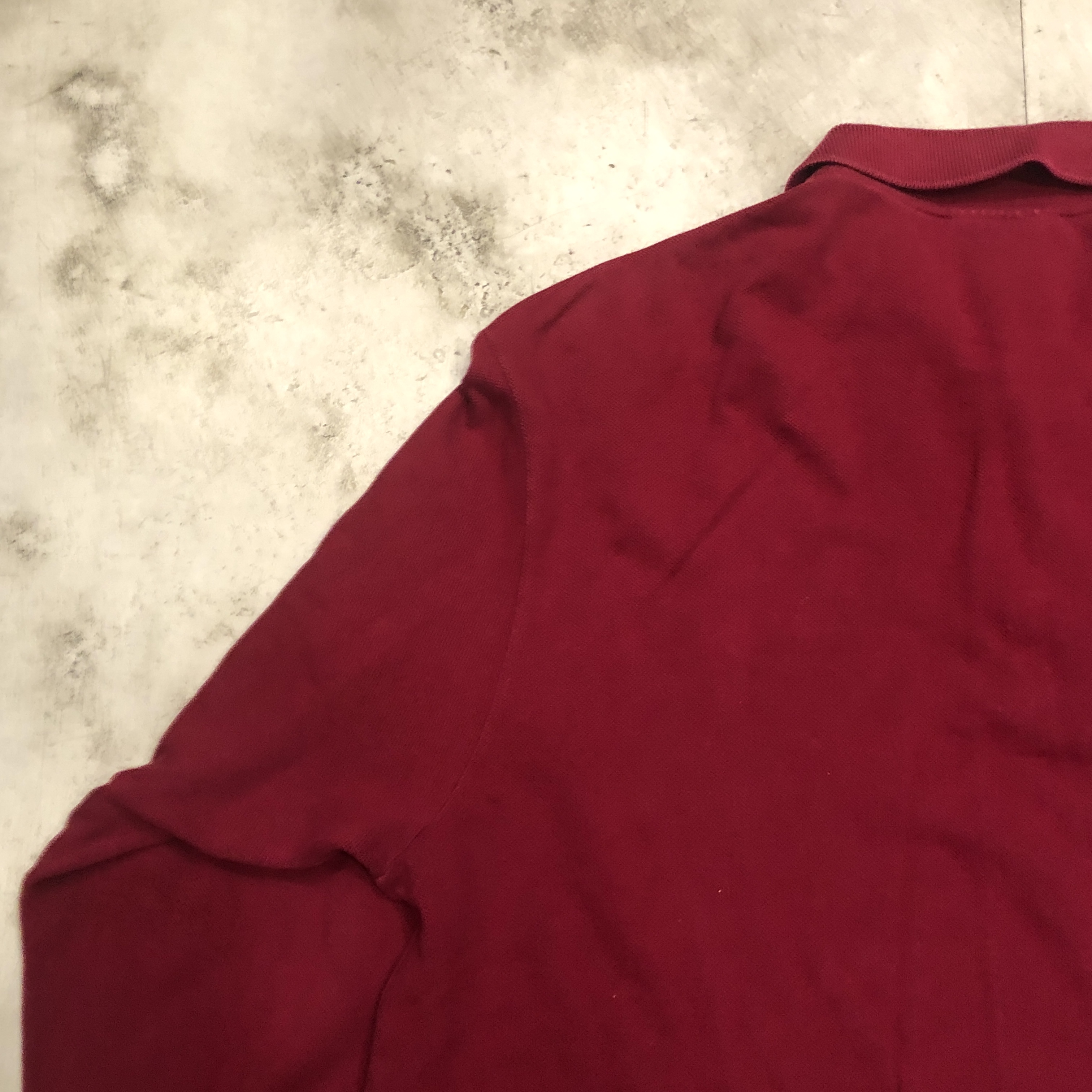 カラーはシックなバーガンディ。派手さを抑えた深みのある色調は、着込むほどに味わいを増し、フレンチヴィンテージならではの空気感を纏います。生地は100%コットンのピケ素材で、肌触りと通気性を両立。胸元にはクラシックなグリーンワニのワッペンが鎮座し、ブランドの象徴性を静かに主張します。