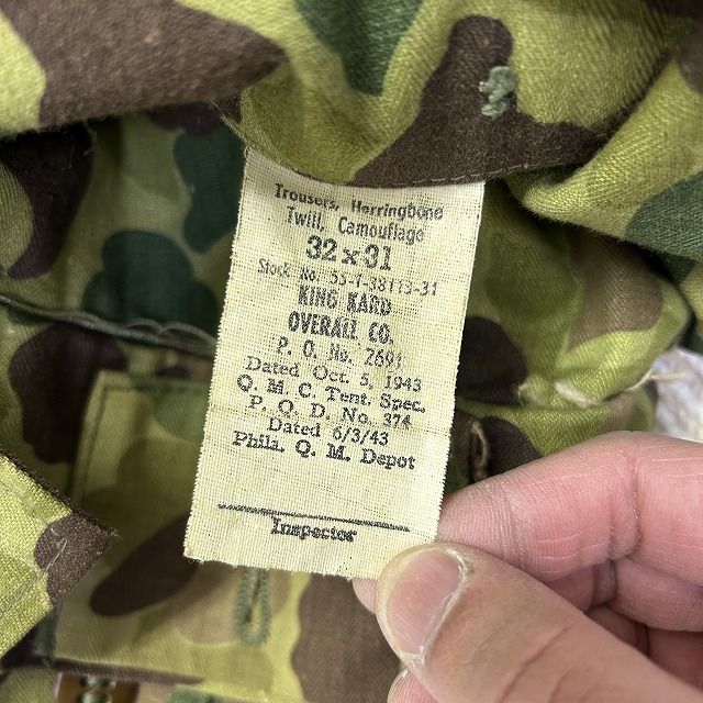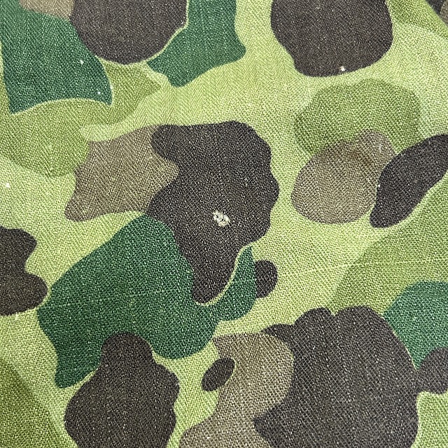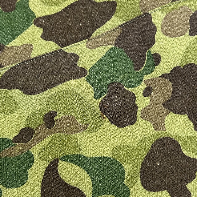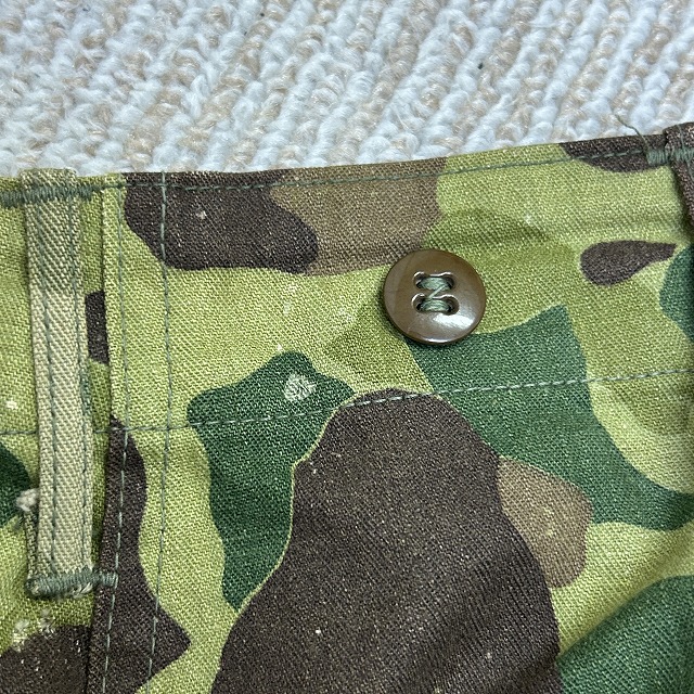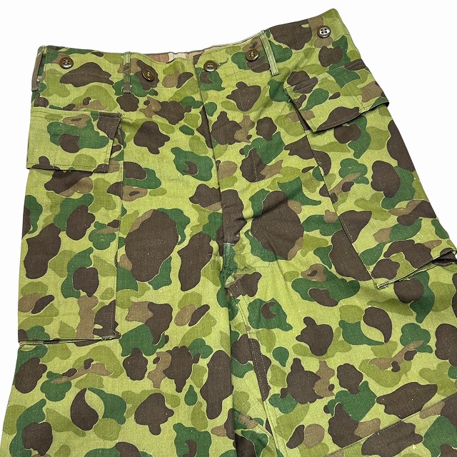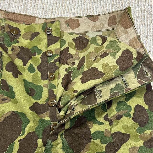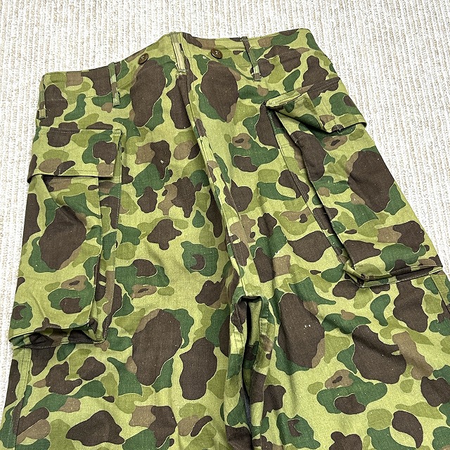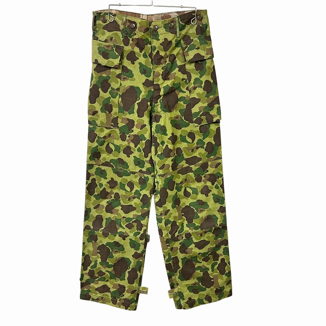 サイズ 実寸W32 L31.5 実寸 ウエスト81cm レングス80.5cm 全長110.5cm 裾幅25cm (ウェストは若干テンションをかけて計測しています) ※若干の誤差はご了承ください ・サイズガイド ウェスト:ウェスト部分の端~端×2 股下:股の合わせ部分~裾 裾幅:裾の端~端 全長:サイドのウェスト上部~裾 状態 画像の様に、汚れがございます。 その他、若干の擦れ、小傷はありますが、着用感はほとんど感じられない極上の状態です。 商品詳細 1940'S VINTAGE US ARMY M-43ダックハンターカーゴパンツ。 フロントボタンは尿素ボタン、ダブルニー仕様、裾にはアジャストタブ付きです。 USMCのダックハンターに比べ圧倒的に数が少なく大変希少です!! 特すべきはそのコンディションです。 生地にハリが残り、着用感がほとんど感じられない大変素晴らしいコンディションです! 今後、このようなコンディションでの入荷はお約束できませんので、コンディション重視の方には ぜひともご検討いただきたい極上の1本です!! ※実店舗と併売している為、ご注文時に売り切れの場合がございます。 予めご了承下さいませ。 ※お使いのモニター環境により、色の見え方が実物と異なる場合がございます。 予めご了承ください。