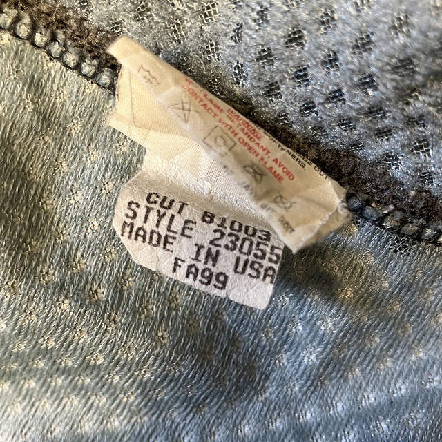 - 肘付近や、背面裾付近に若干の毛潰れがみられます。また、右袖先にダメージがみられます。その他、パイピングの毛玉、スレ等の年代相応の着用感がみられ、ユーズド慣れされた方におすすめの商品です。