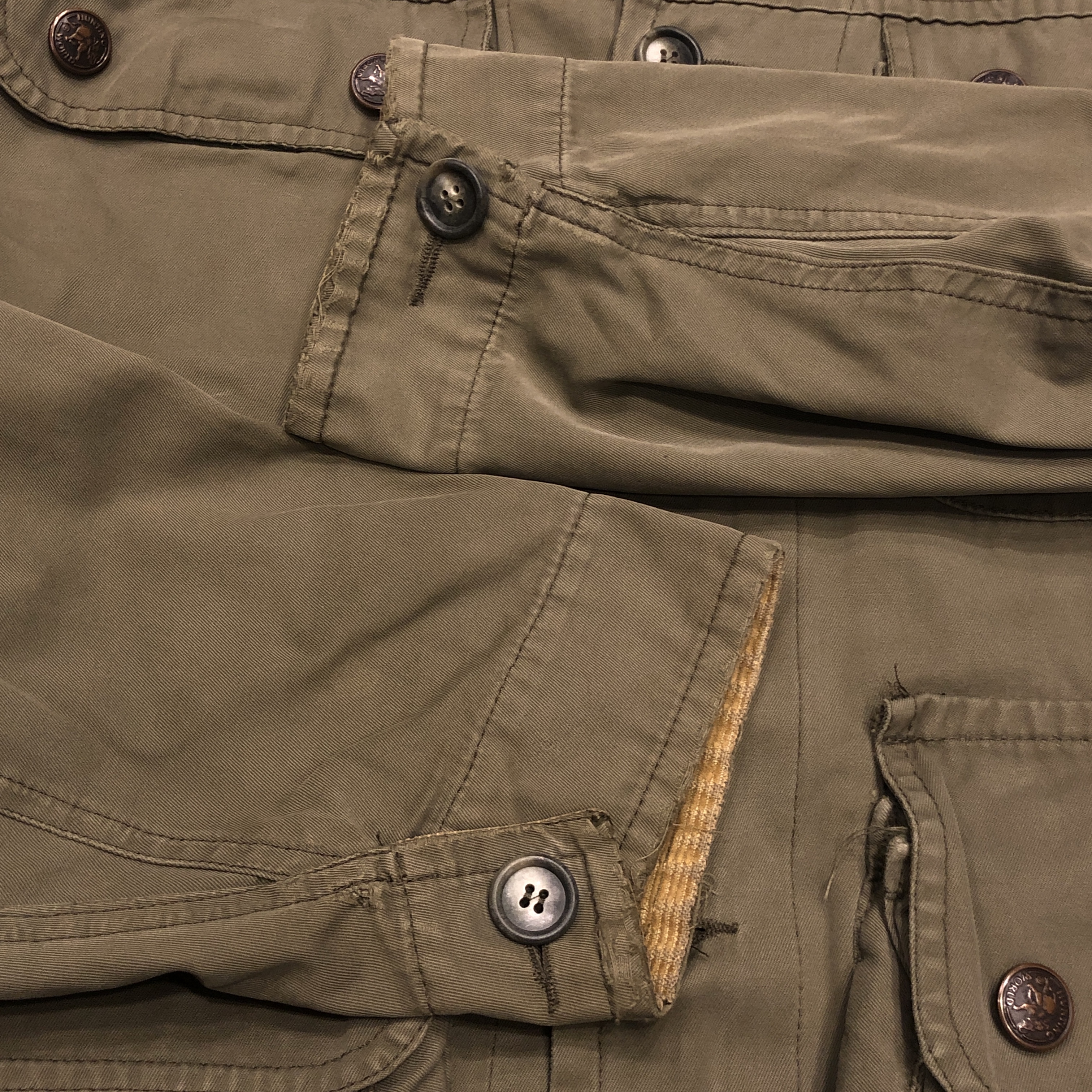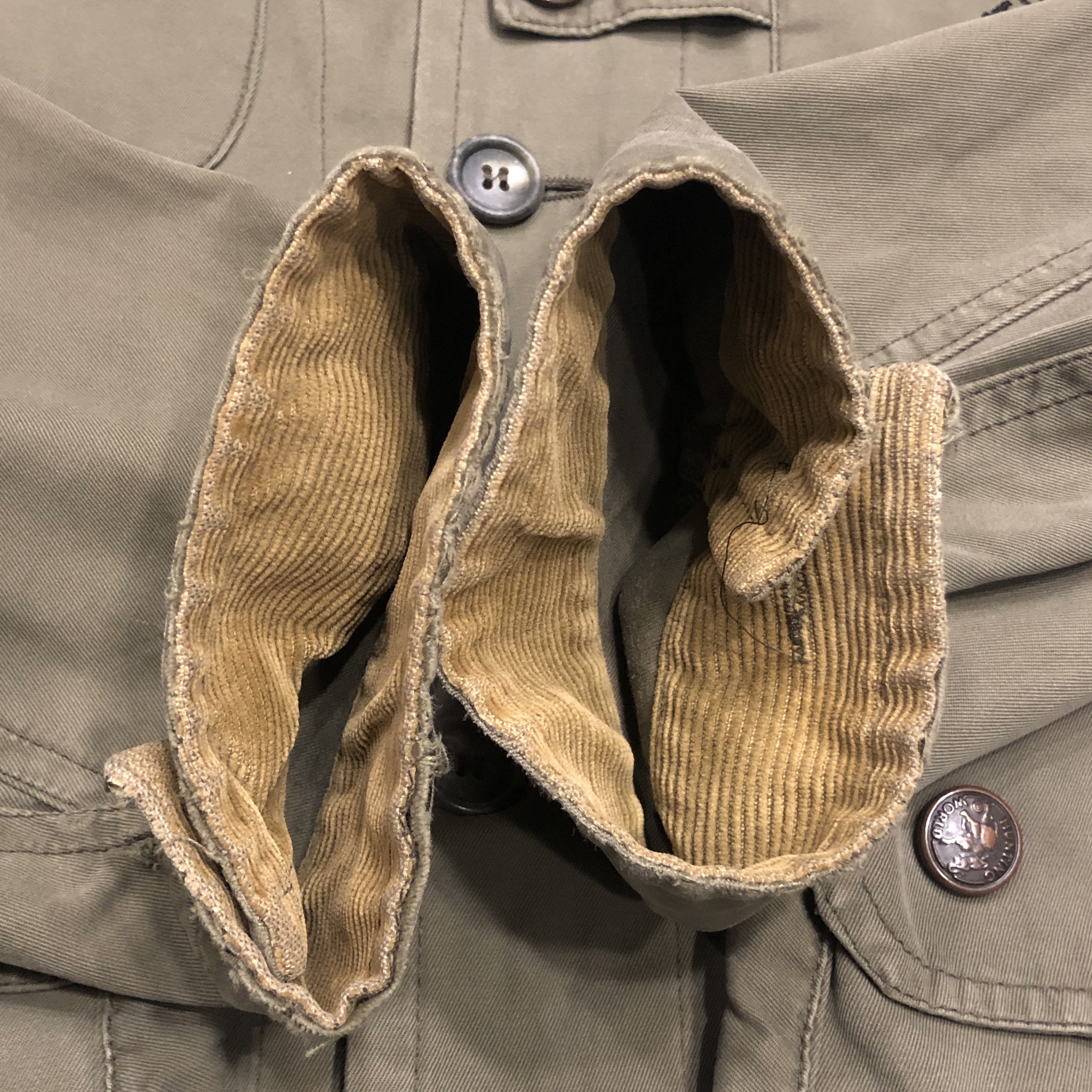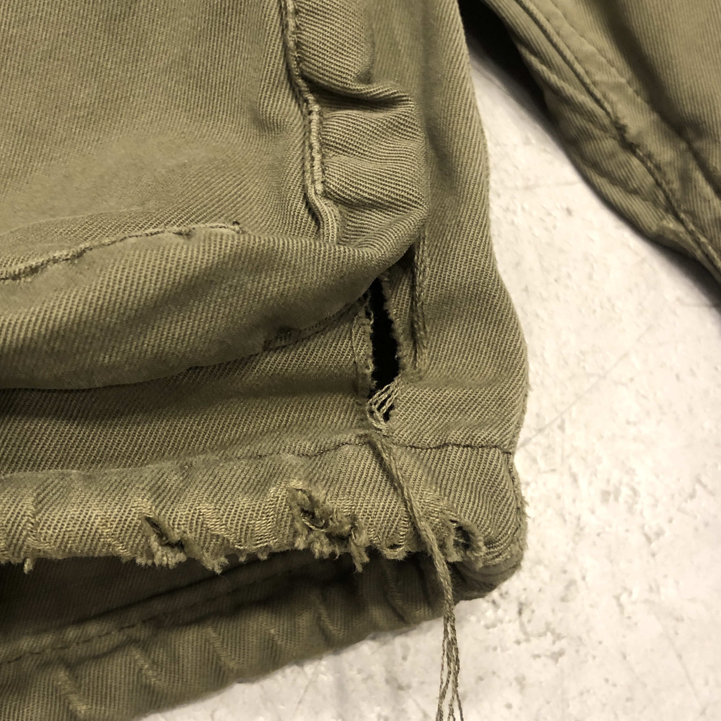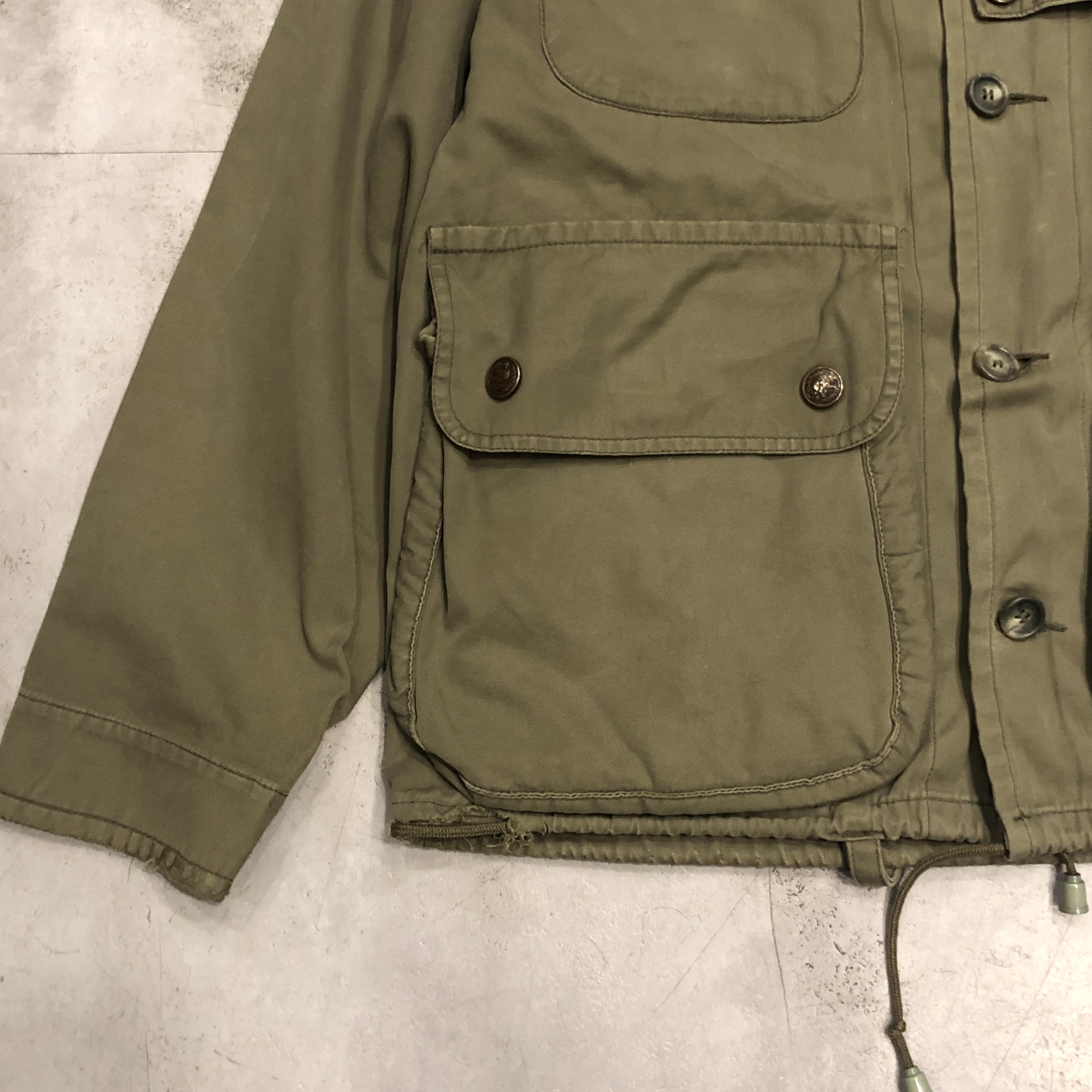- 年代相応の着用感、スレ、アタリ、汚れ、ダメージ等が画像の様にございますが、ヴィンテージ慣れされた方でしたら問題なく着用していただける範囲です。おそらくフードが欠損しております。