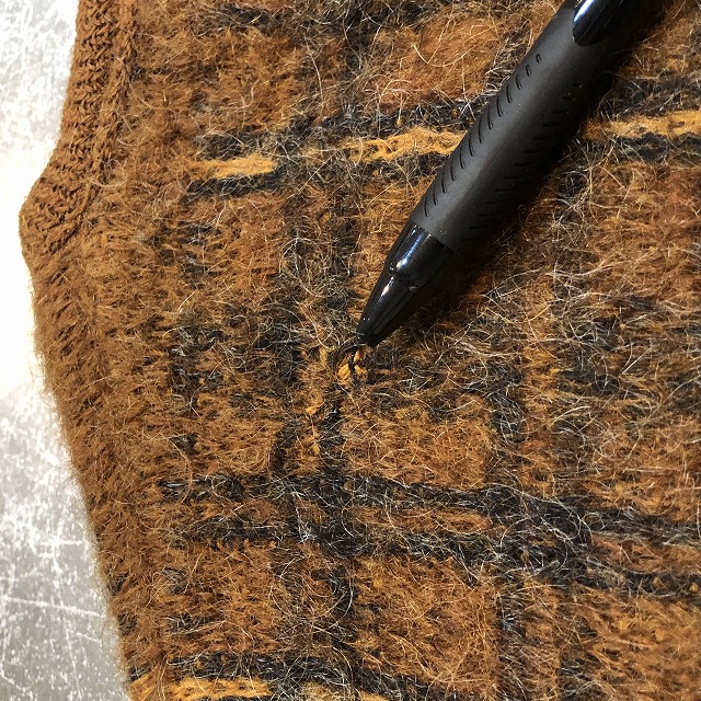 珍しい柄のモヘアカーディガン。