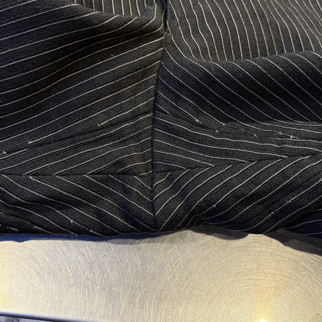 「バックルバック、ブラック、ストライプ、実寸W37 L28.5」
