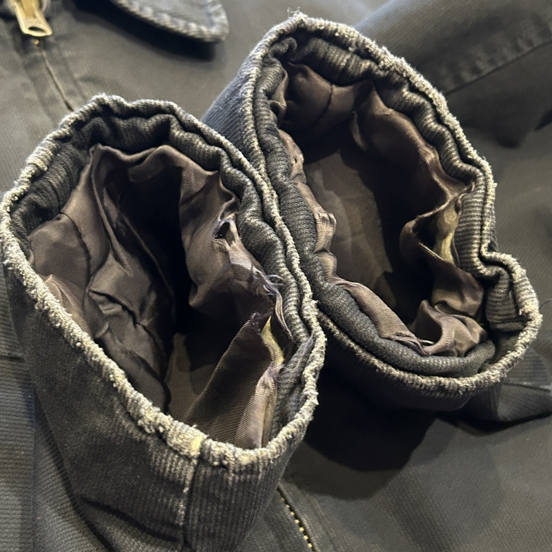 - 袖先、袖裏にダメージがございます。襟や裾等にスレ、全体に色褪せ等の着用感がございますが、その他に目立つ汚れやダメージ等は無く、古着慣れされた方でしたら問題無く着用していただける状態です。
