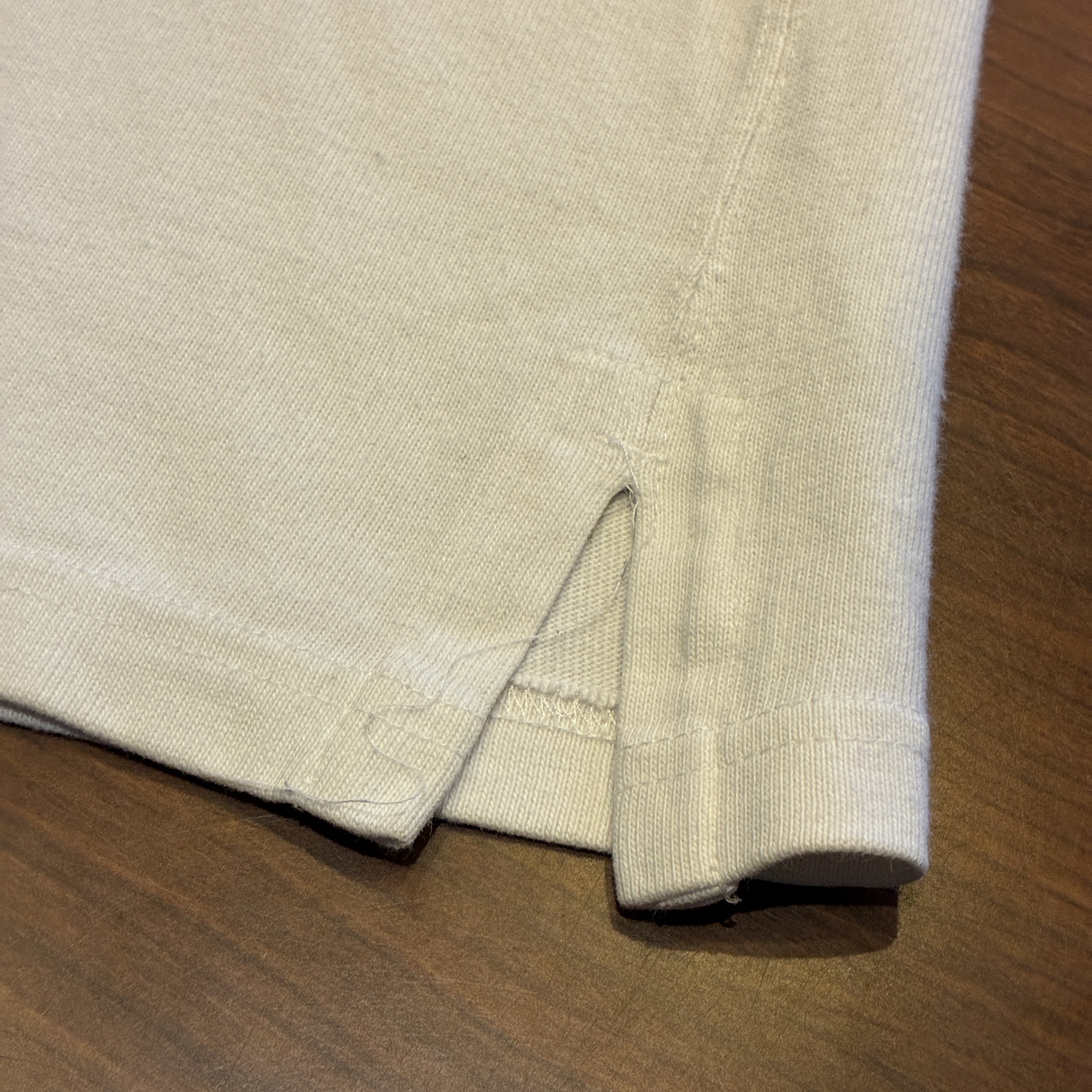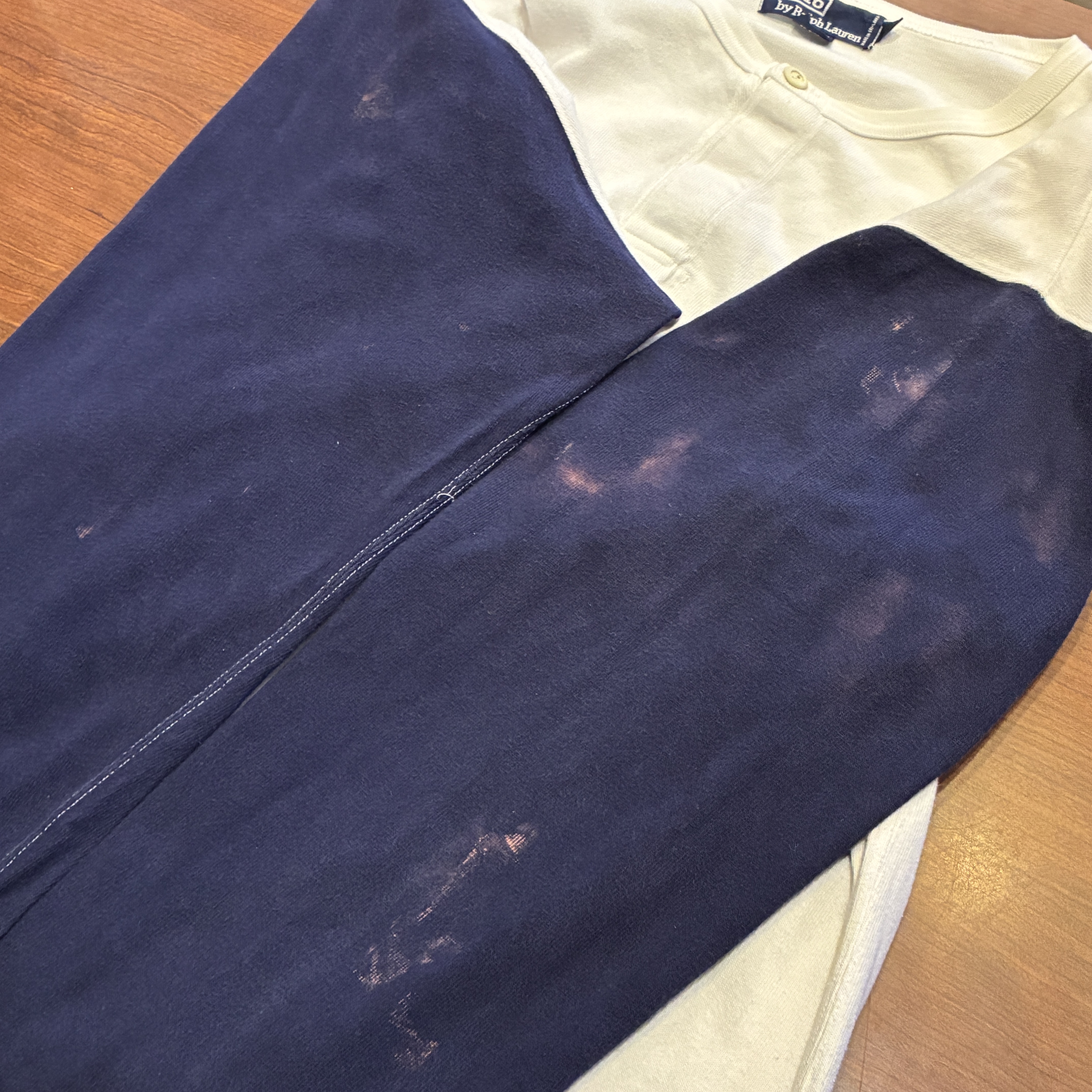 - 多少の毛羽立ちや薄汚れ、袖にブリーチ跡等の着用感がございますが目立つダメージ等は無く、まだまだ問題無く着用していただける状態です。