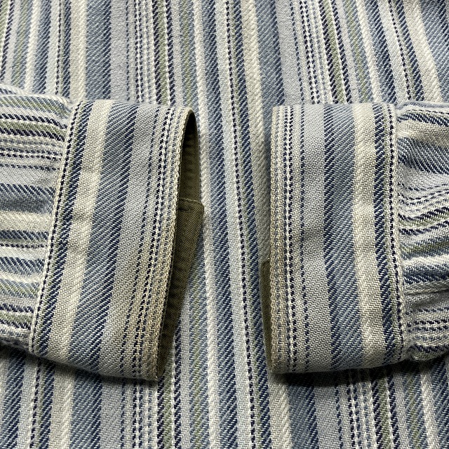 - 襟元、袖先に薄汚れがみられます。その他、毛羽立ち等の着用感ございますが、まだまだ問題なく着用していただけます。