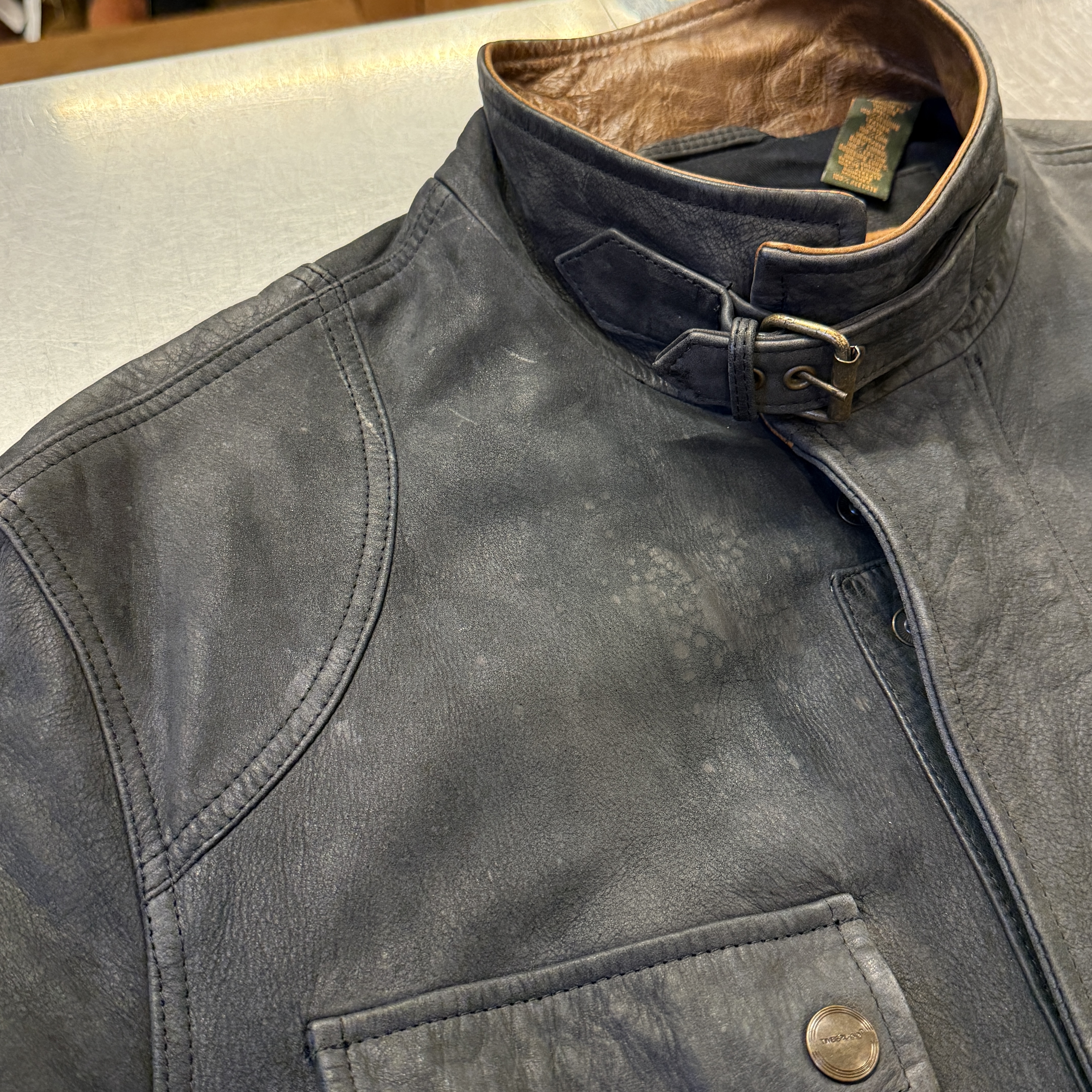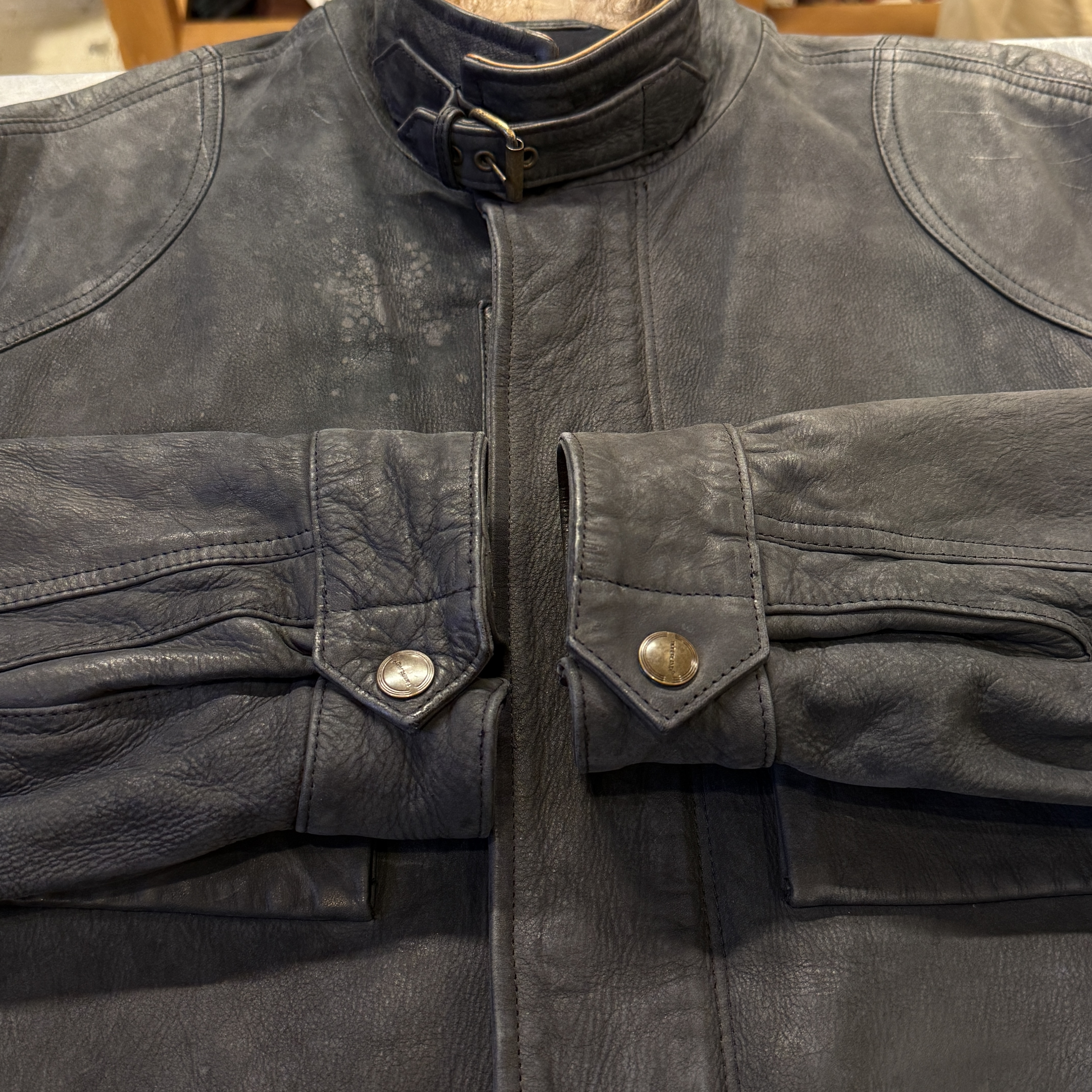 - 全体的に着用感、画像の様にレザー特有の小キズやスレが見られます。