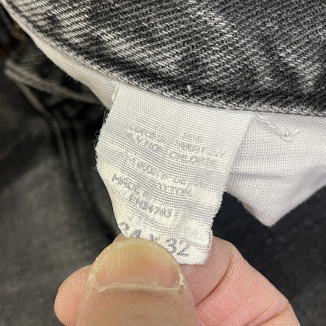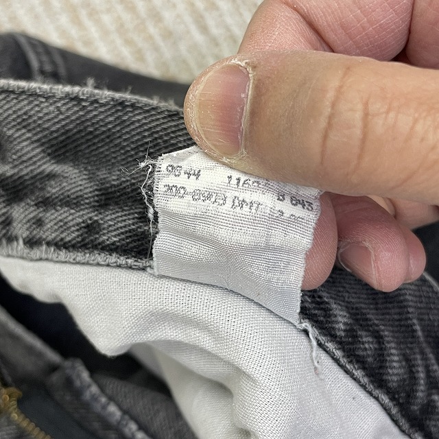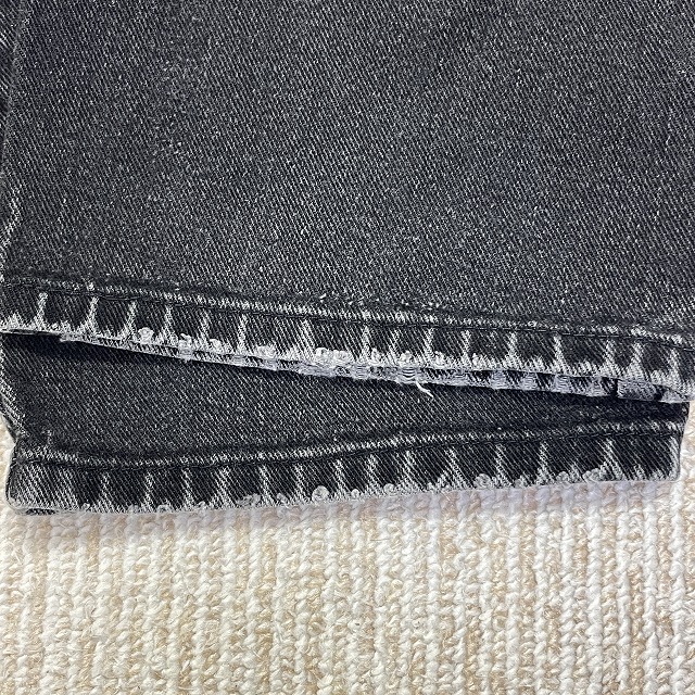 「ブラックデニム、ストレートシルエット、実寸W33.5 L30.5」