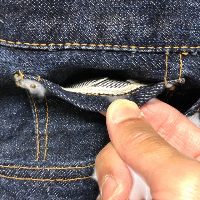 ポケット裏リベット銅色、コインポケット耳付き、フロントボタン通常R、