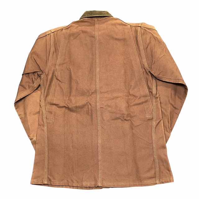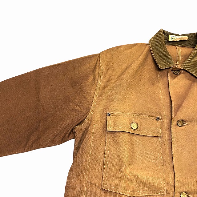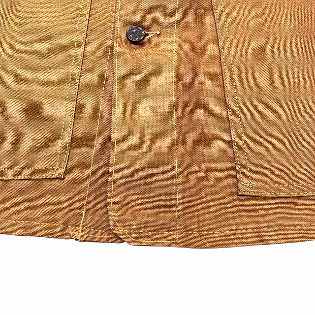 襟コーデュロイ、ボタンは社名刻印入りボタンです。