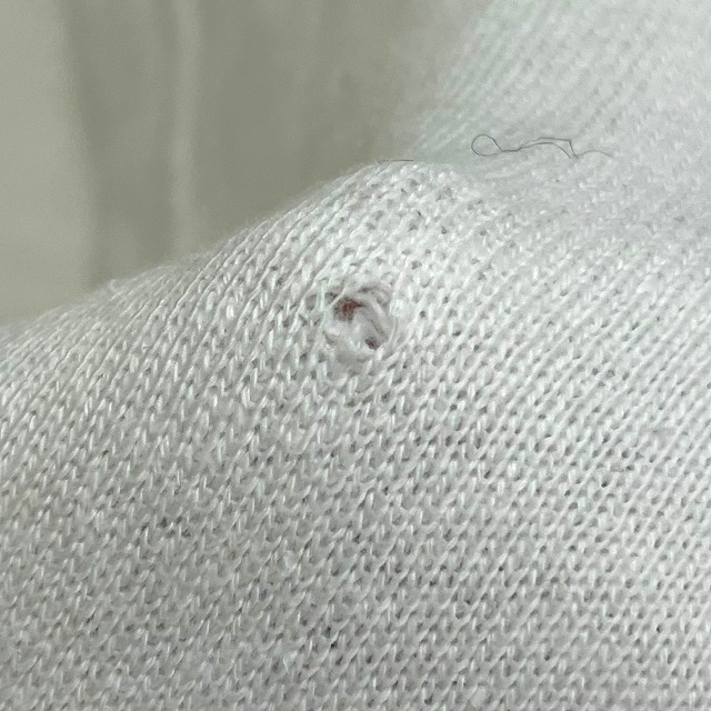 - 画像のように、汚れが所々にあり、袖に小穴がございます。