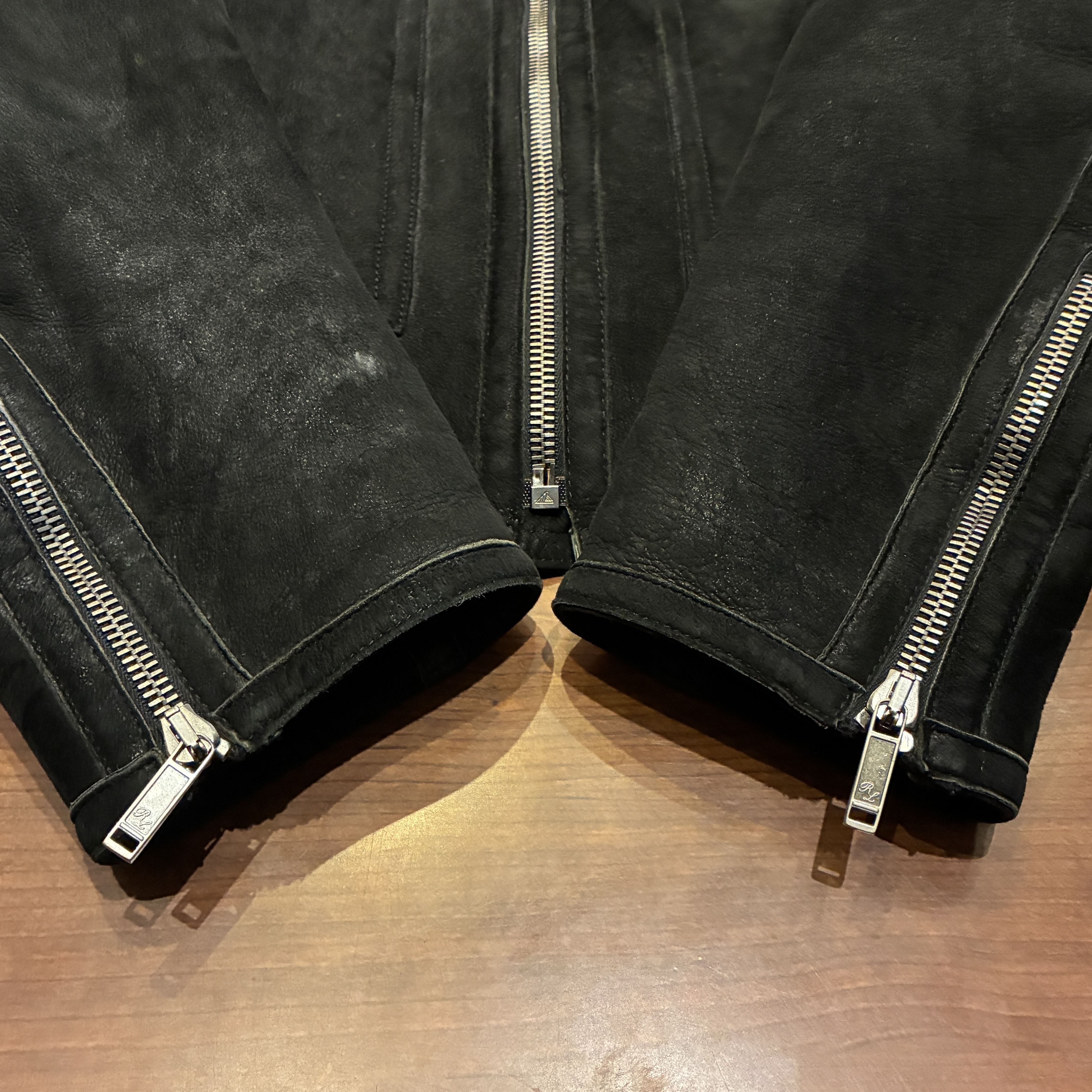 - ムートン素材特有の多少のシミやアタリ等がございますが目立つダメージ等は無く、まだまだ問題無く着用していただける状態です。