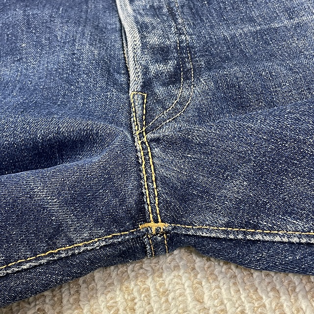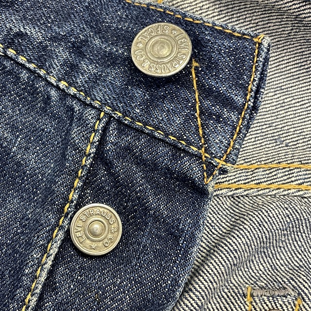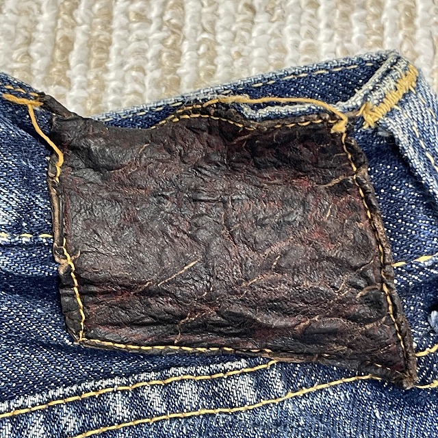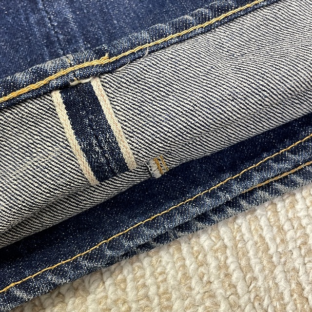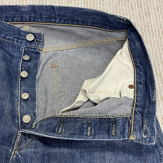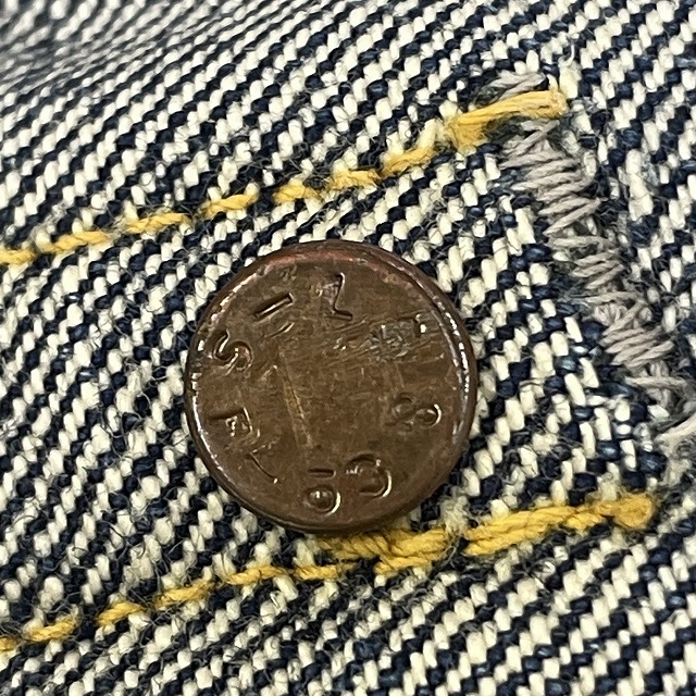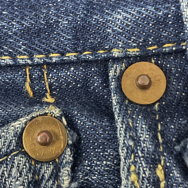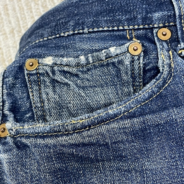 ポケット裏リベット銅色、コインポケット耳無し、フロントボタン通常R、太幅ベルトループ(約1.3㎝)、