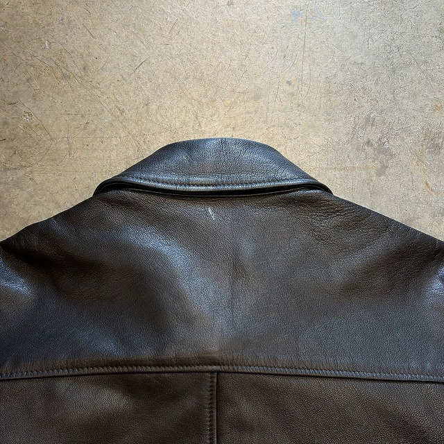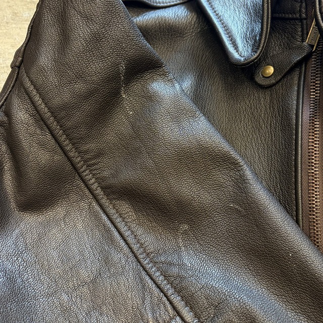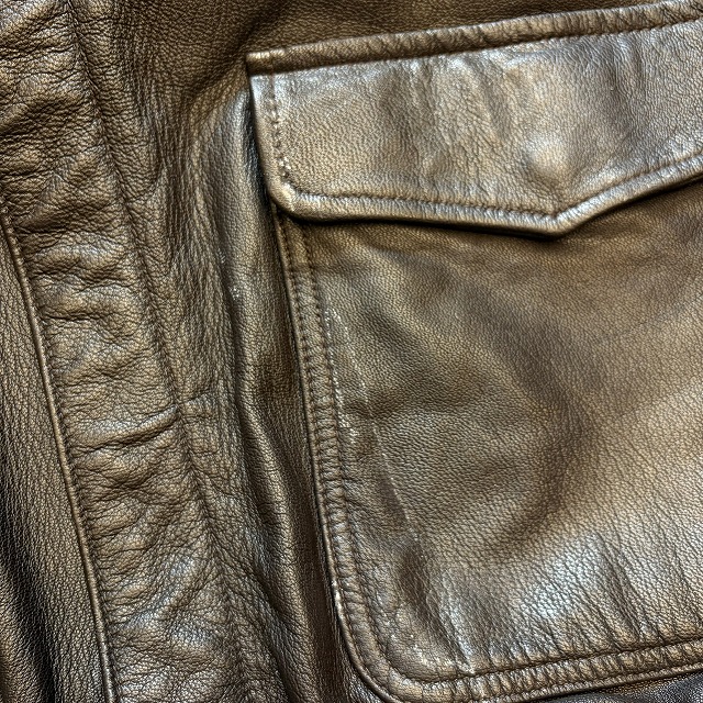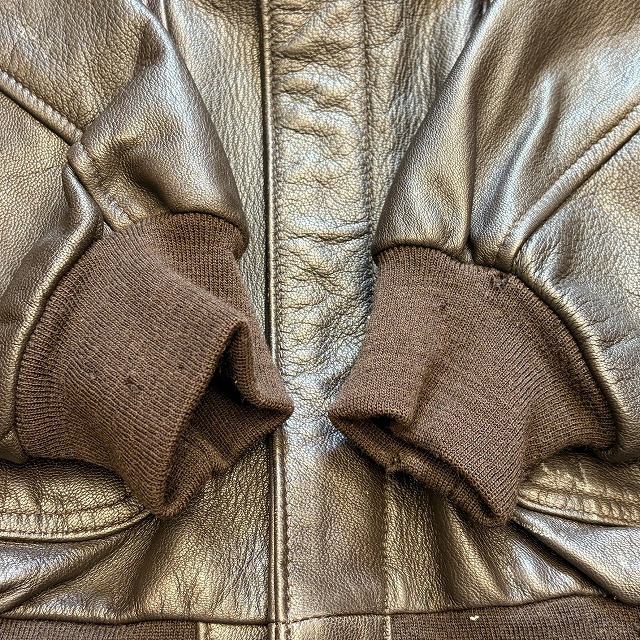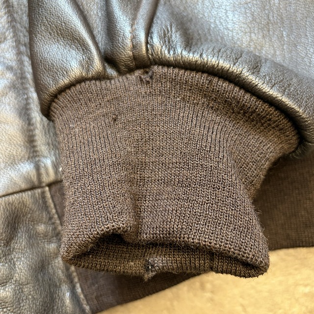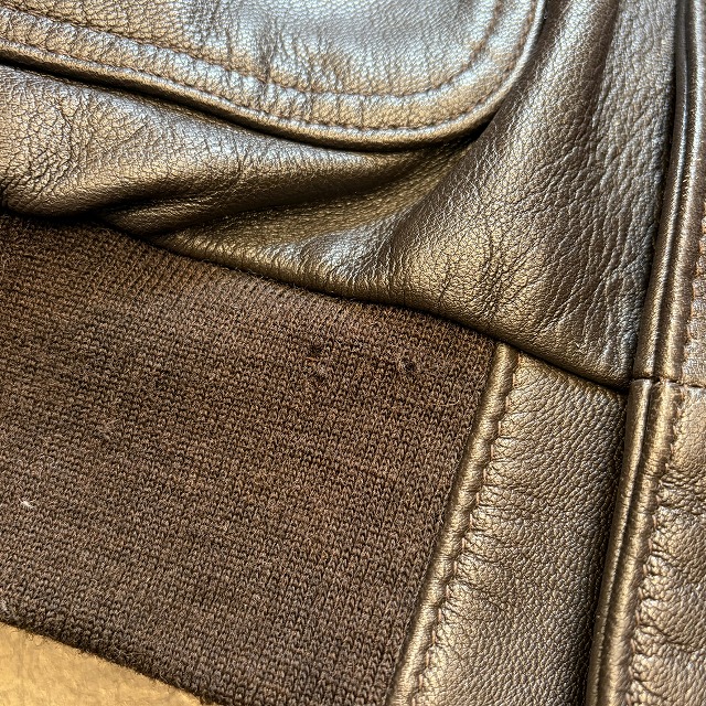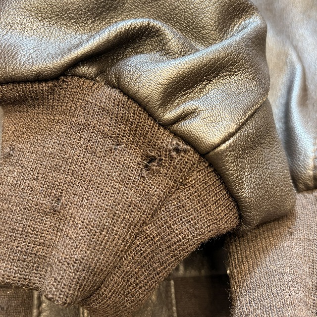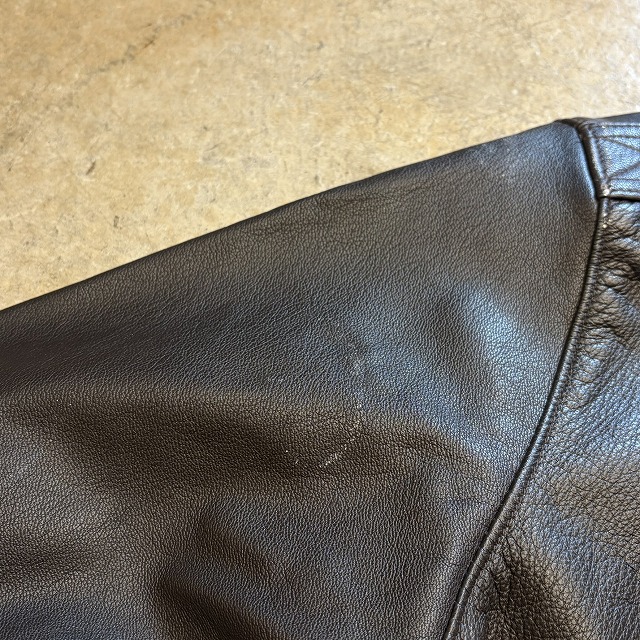 - 所々に小さなペンキ汚れや、レザー特有のスレや小傷がみられます。また、袖や、裾のリブに小さなダメージがみられる箇所がございます。その他、年代相応の着用感ございますが、ユーズド慣れされた方でしたら、まだまだ問題なく着用していただけます。