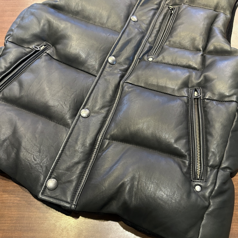 - 左脇部分にダメージがございます。その他にレザー特有の小傷やシワ、ウールの毛羽立ち等の着用感がございますが、古着慣れされた方でしたら問題無くしていただける状態です。