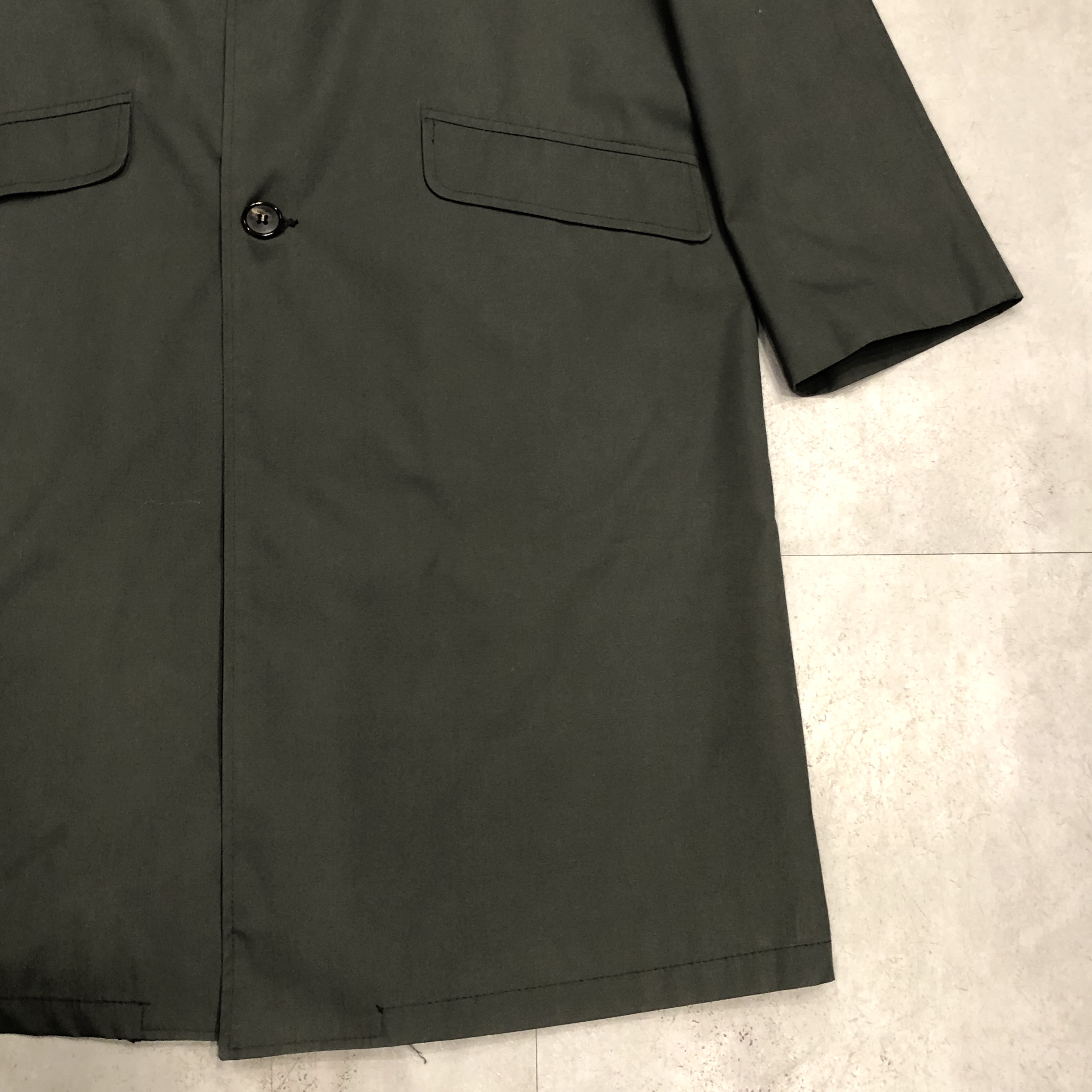 素材は50% FORTREL POLYESTER × 50% COMBED COTTON。当時の最新テクノロジー素材として登場したPERMA-PREST。ノンアイロンで、フルウォッシャブル。タグに誇らしく記された「THIS COAT REQUIRES NO IRONING」という一文が、当時の時代背景を物語ります。ウールコートが主流だった時代に、“扱いやすさ”という新しい価値を提示した革新的な一着でした。