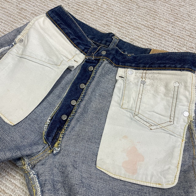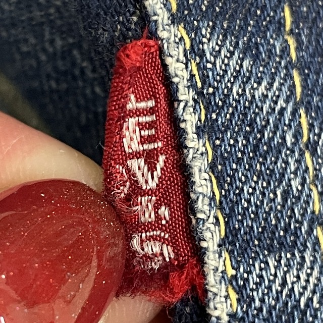 - トップボタン裏刻印『6』、Vステッチ、ウェストシングル、足長R、不均V