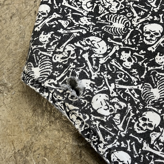 - 背面裾先や、一番下のボタン付近に小さなダメージがみられます。また、所々に若干の薄汚れがみられます。その他、プリントのスレ、ほつれ等の年代相応の着用感がみられ、ユーズド慣れされた方におすすめの商品です。