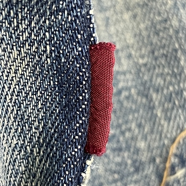ポケット裏リベット銅色、コインポケット耳無し、フロントボタン通常R、太幅ベルトループ(約1.3㎝)、