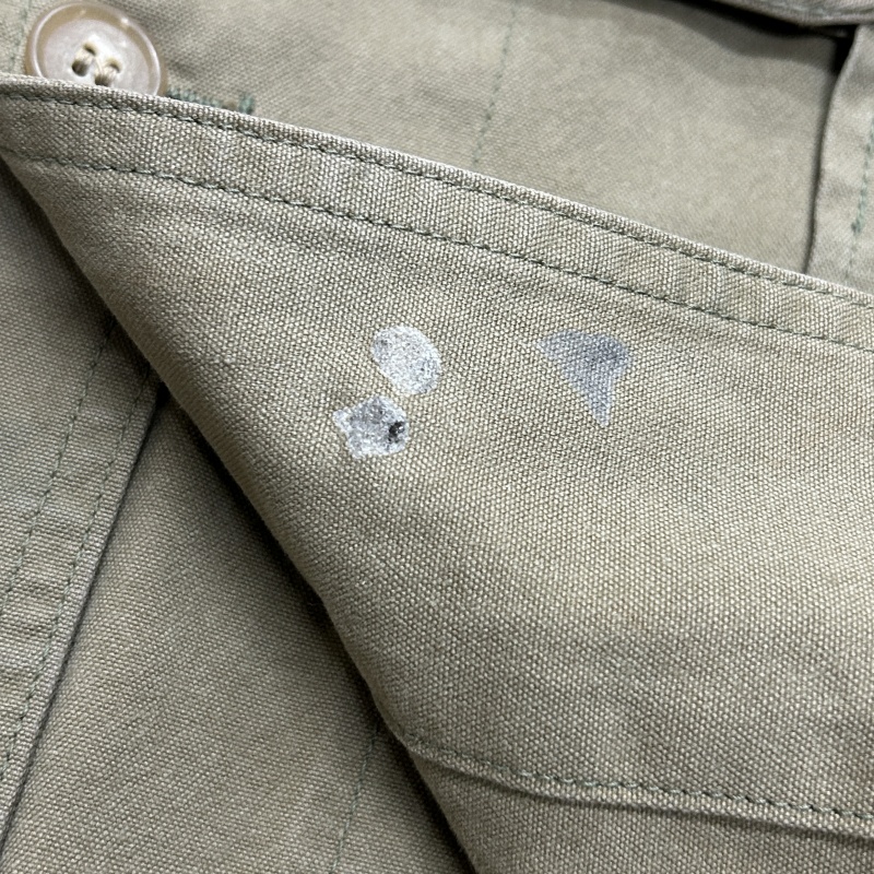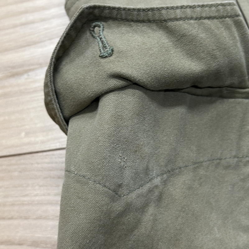 - 右ポケットのボタンが欠損しております。細かな汚れが複数箇所、アタリ等着用感がございますが、その他に目立つ汚れやダメージ等は無く、古着慣れされた方でしたら問題無く着用していただける状態です。