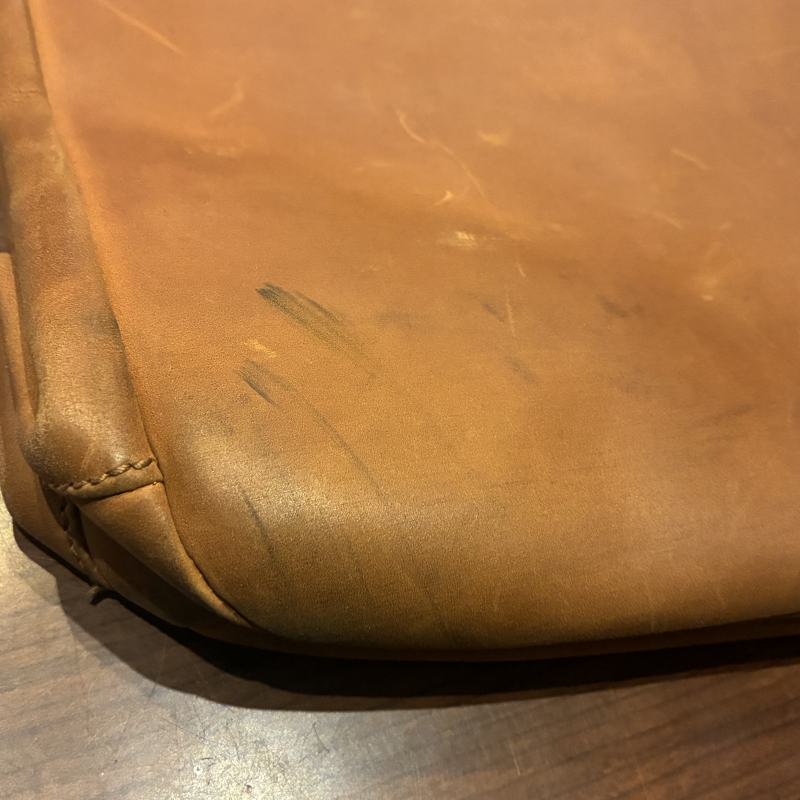 - 革製品特有の多少の傷や皺、黒ずみ等の使用感がございますが目立つダメージ等は無く、問題無く使用していただける状態です。