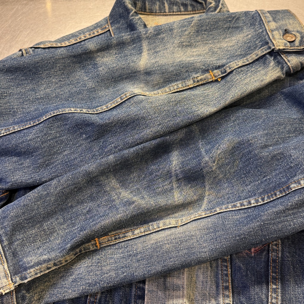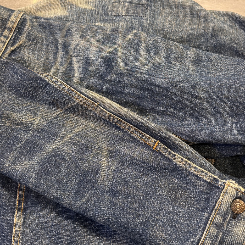- 一部汚れやワッペン跡など年代特有の着用感が御座いますが、ヴィンテージに慣れている方でしたら問題なく着用可能な状態です。