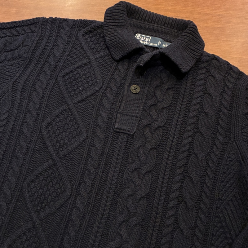 COTTON CASHMERE ARAN KNIT POLO