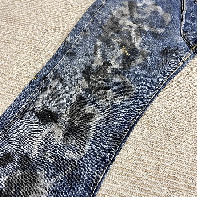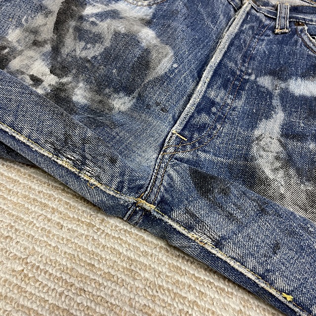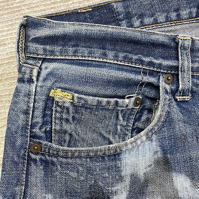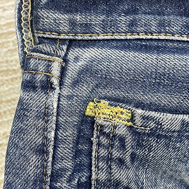 - 画像のように、コインポケットのリベットが欠損しており、ボタンホール、股、裾等にリペアやリステッチがございます。