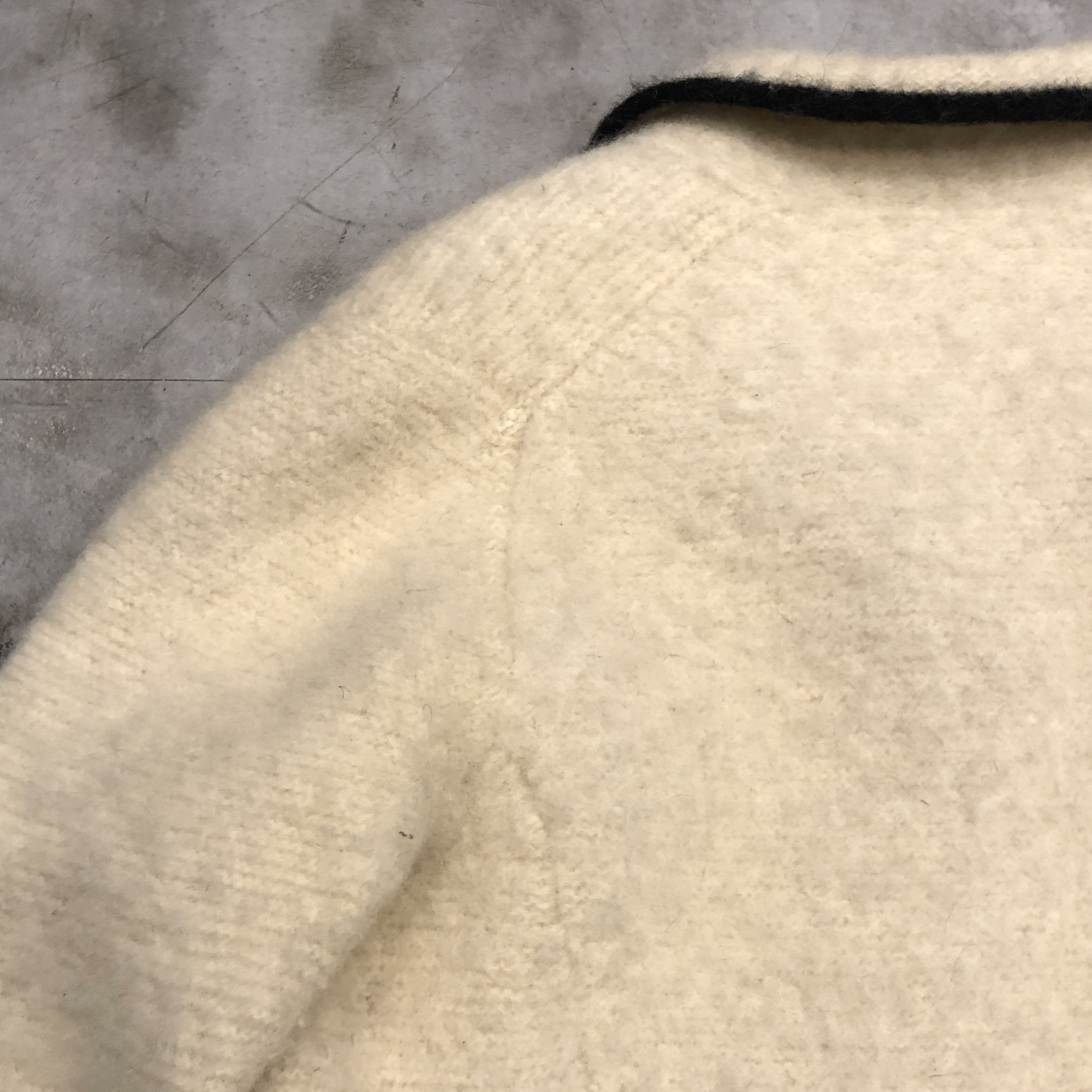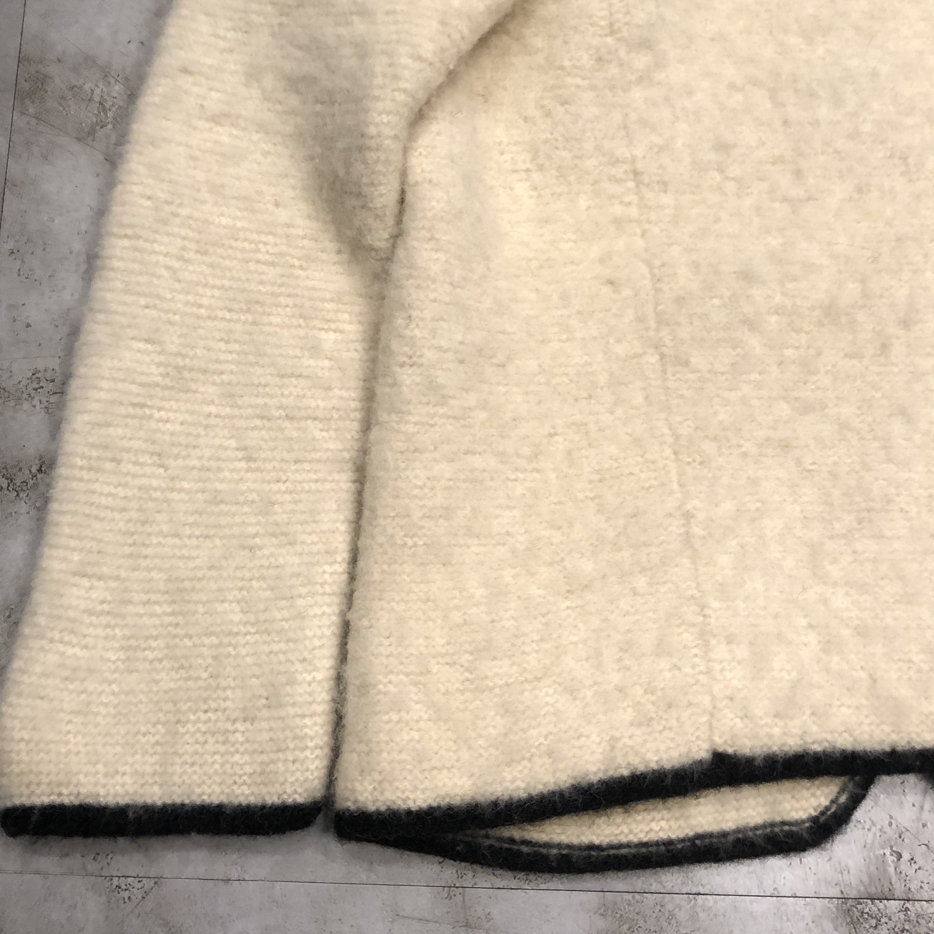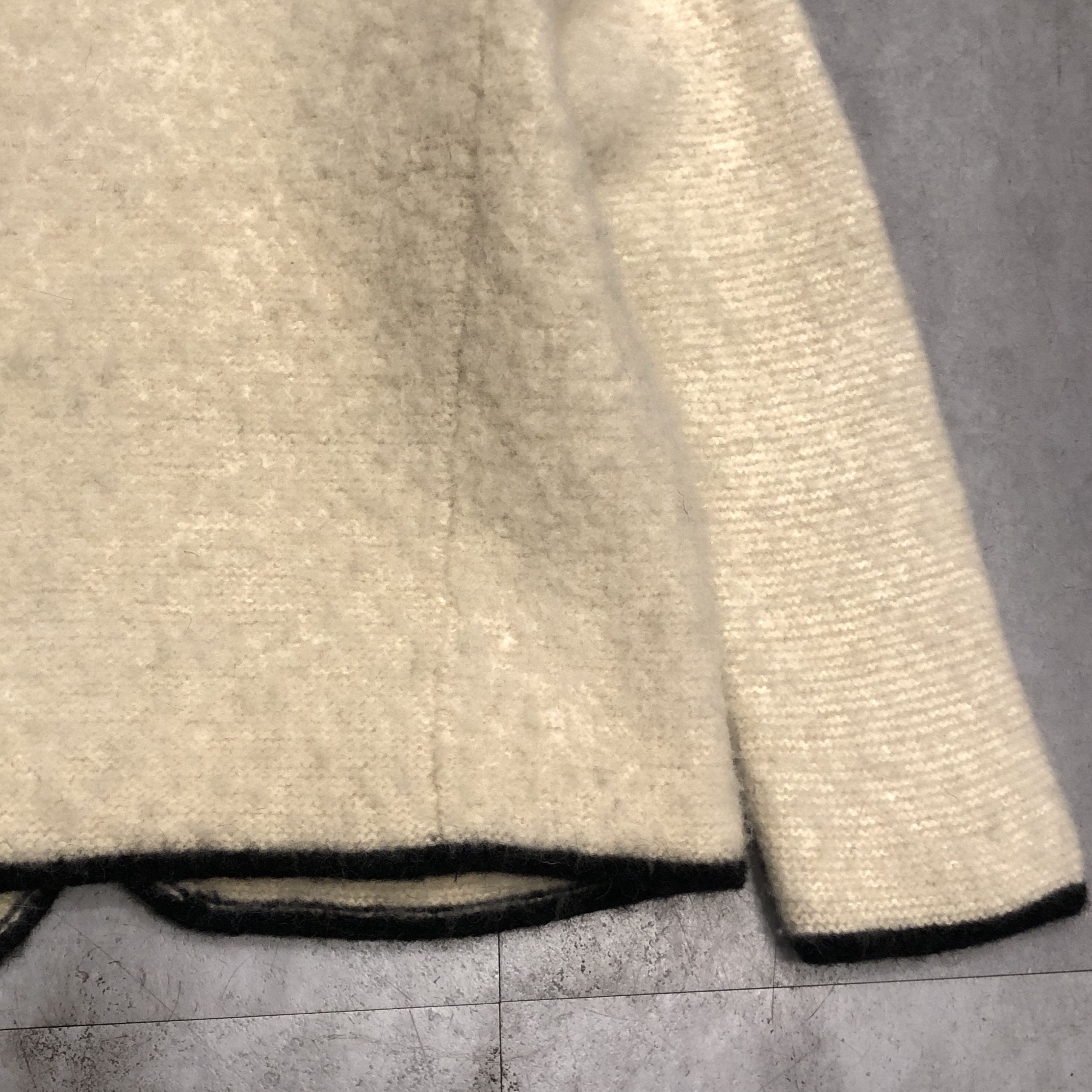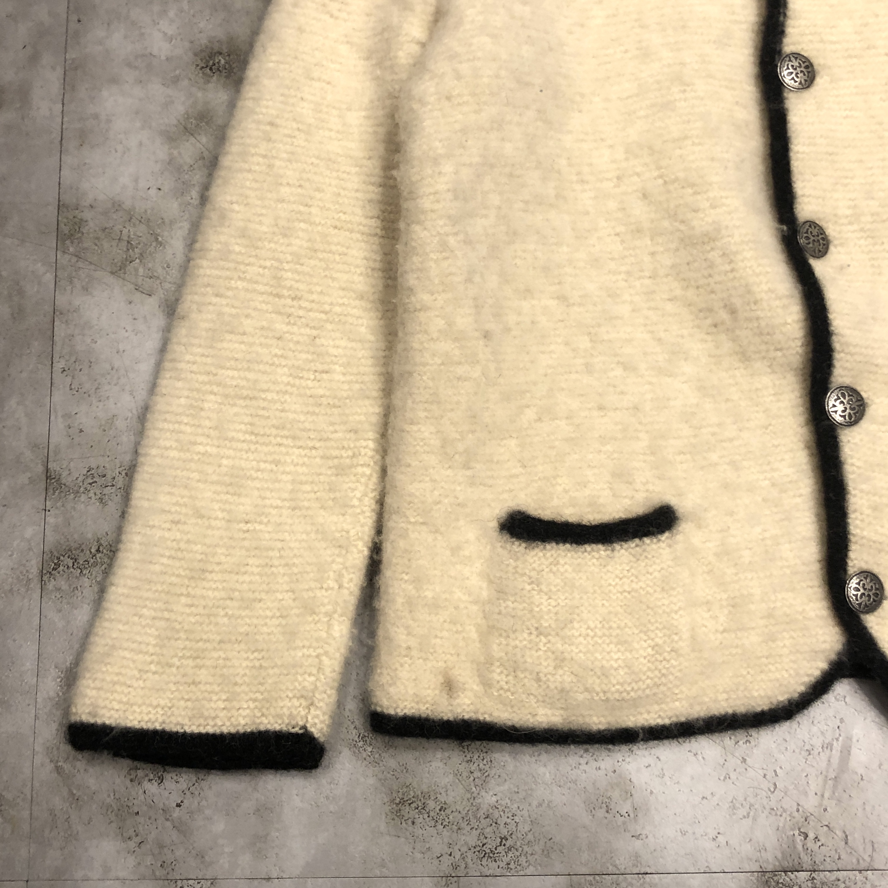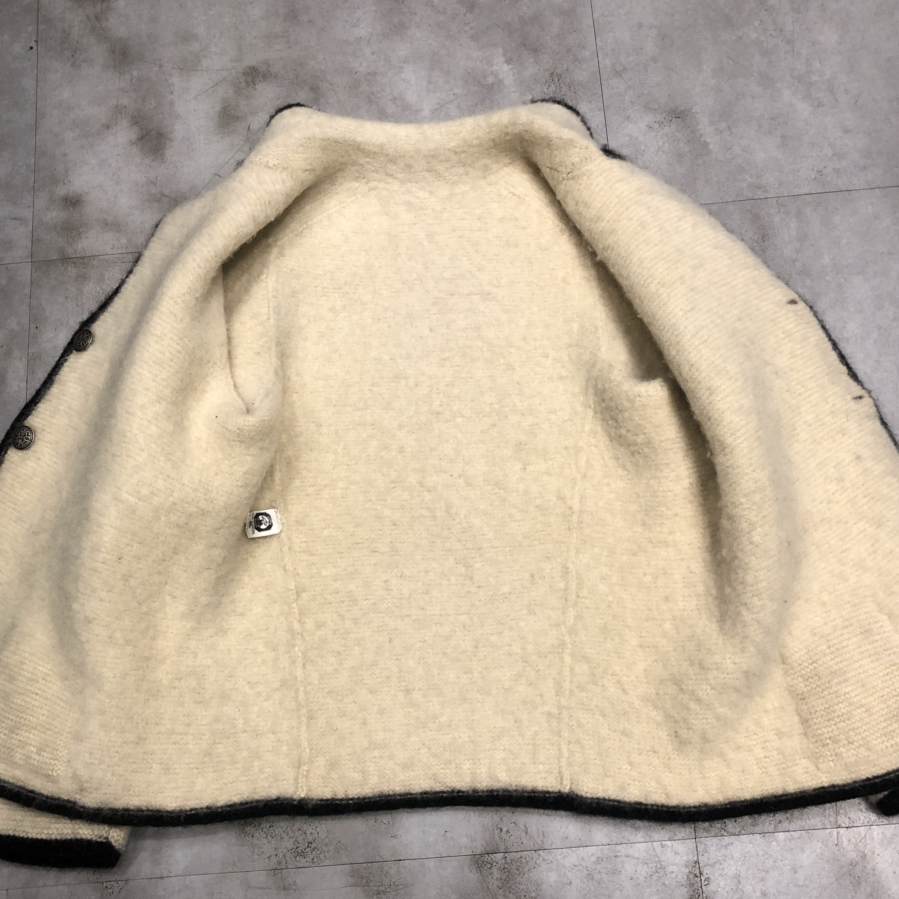 - 年代相応の着用感、右裾の汚れ、全体的に毛玉等が画像の様にございますが、古着慣れされている方でしたら問題なくお使いいただけます。ボタンが替えられています。