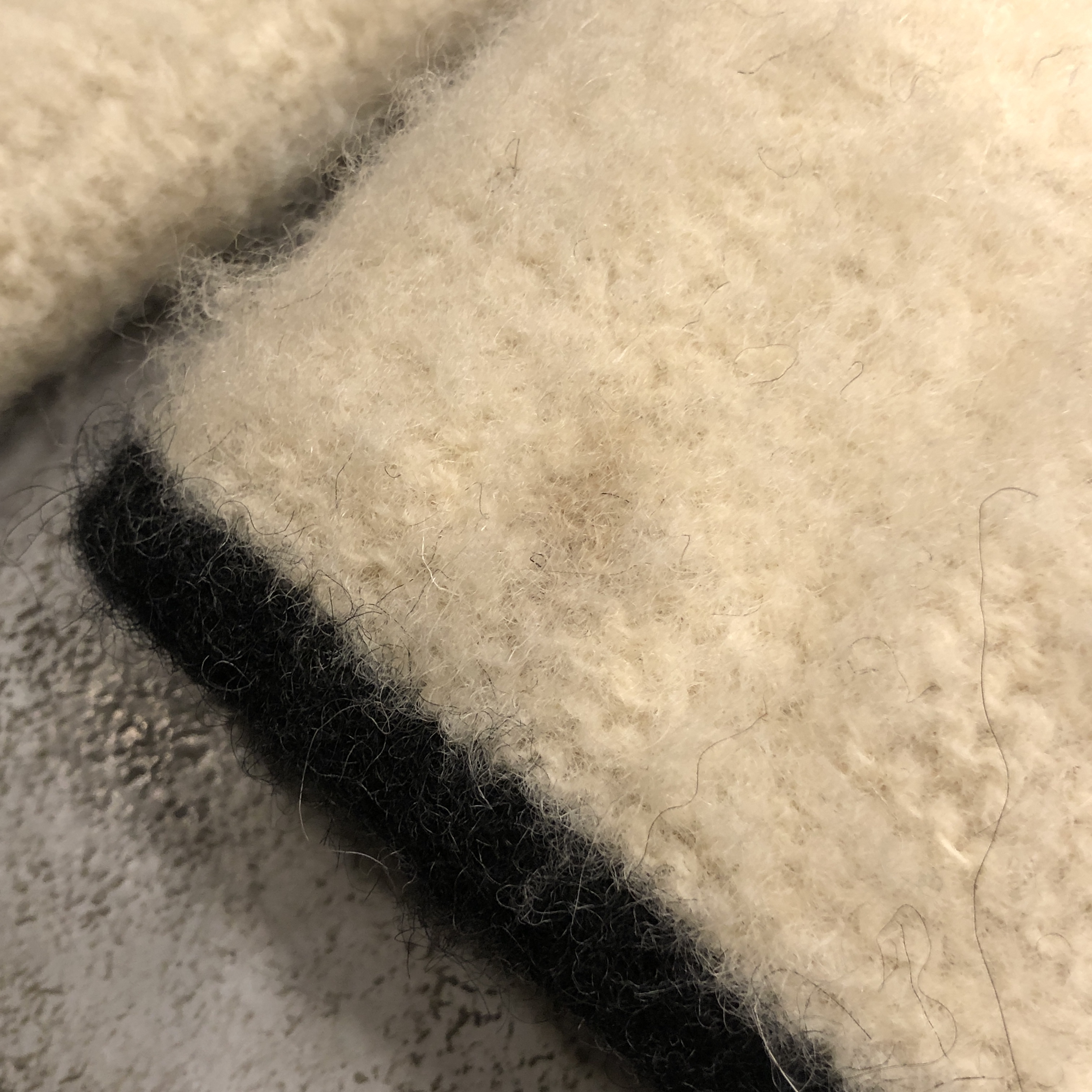 シルエットは全体的にゆとりを持たせながら、肩の丸みに沿ったナチュラルなライン。裏地のない一枚仕立てで、素朴ながらも存在感のある風合いです。着込むほどに身体に馴染み、毛足の表情も育っていくのが特徴。