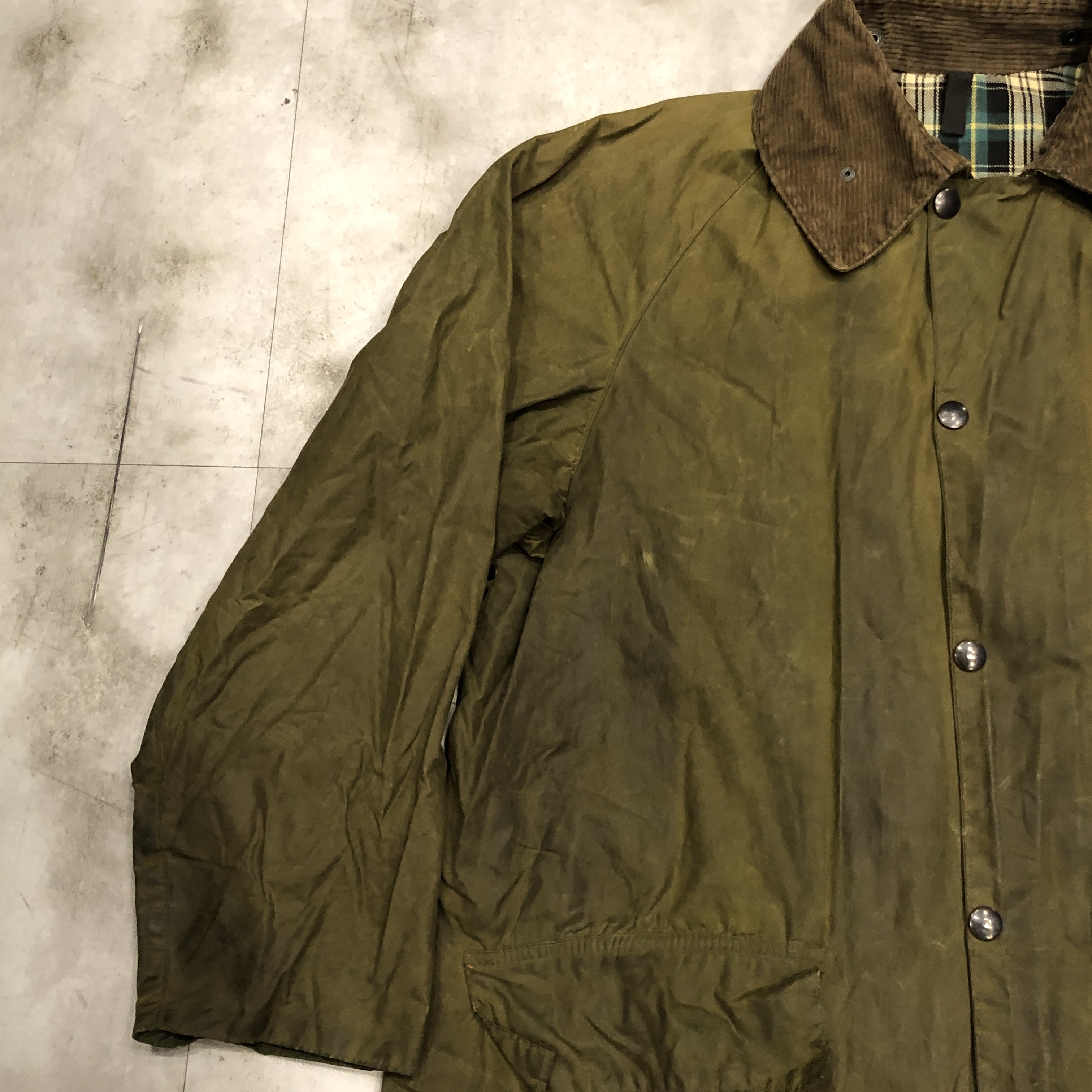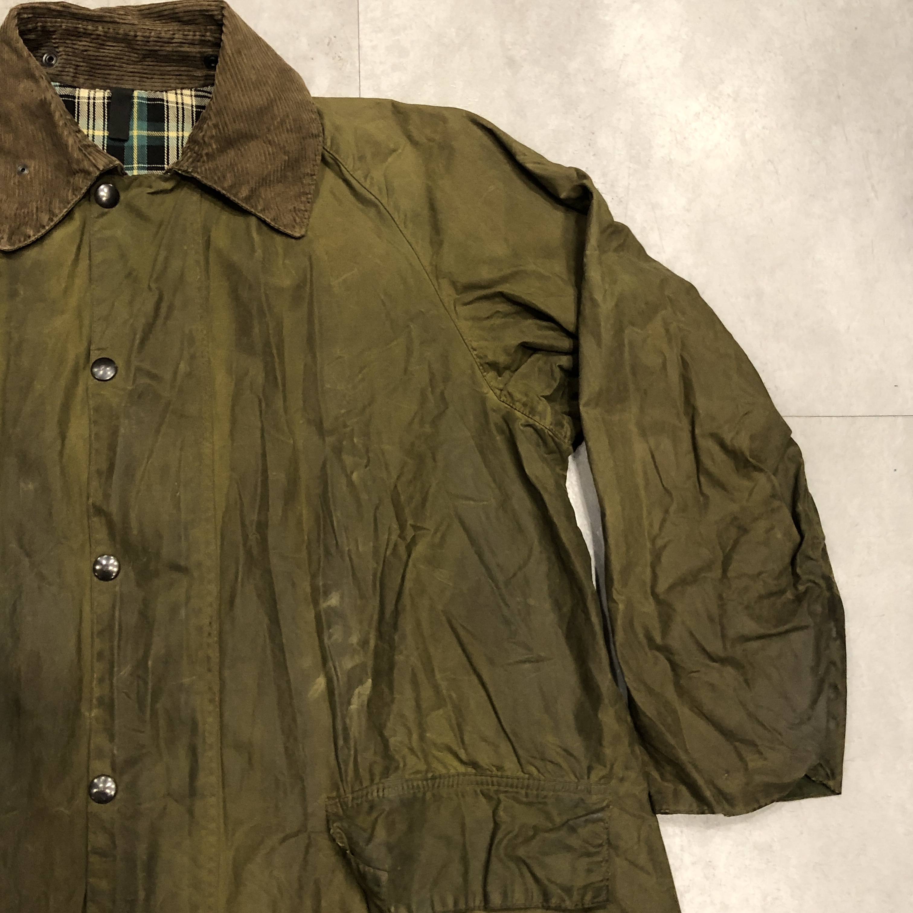 オリーブカラーは均一ではなく、時間と動きに応じて生まれた濃淡が重なり合い、まさに“育ったBarbour”という佇まいです。