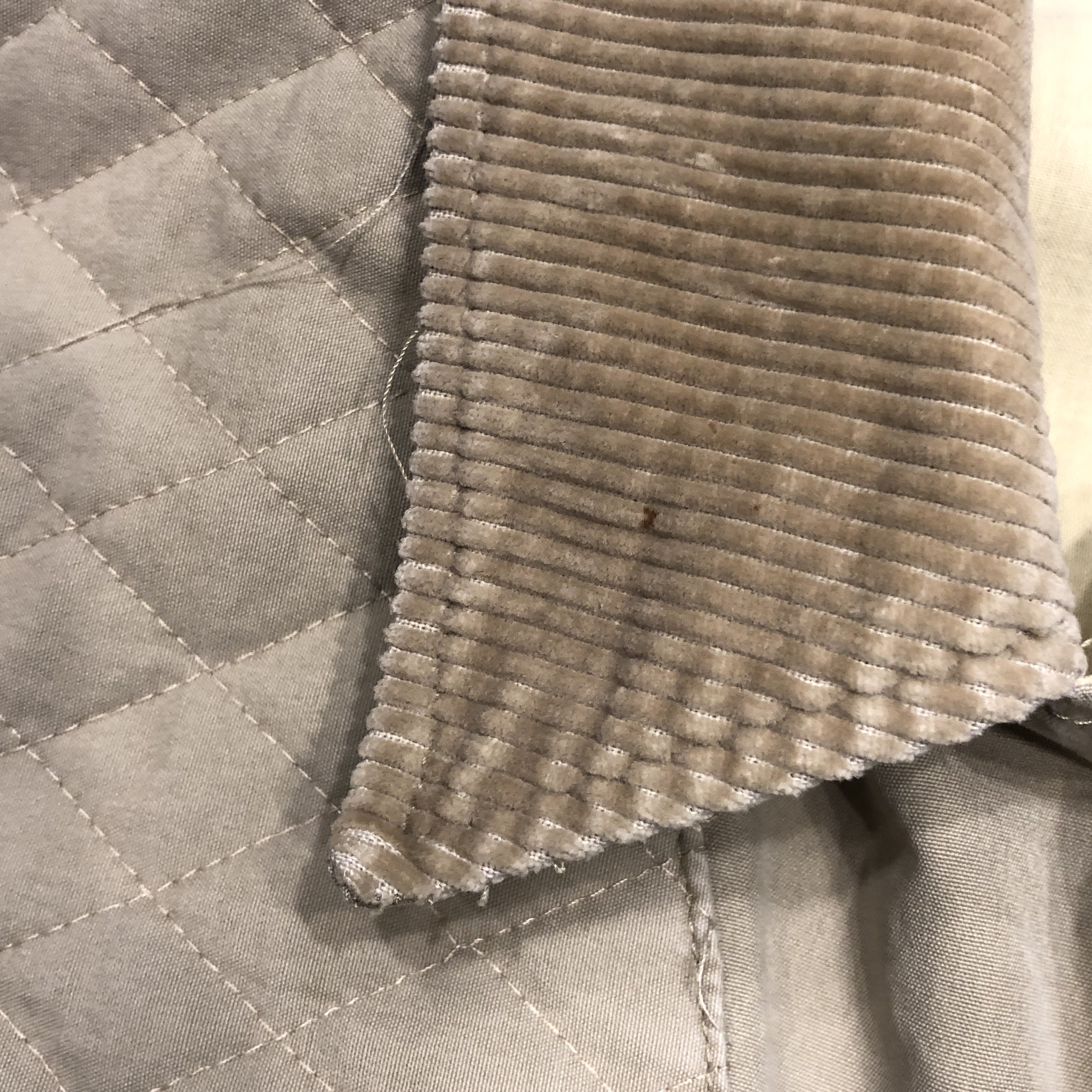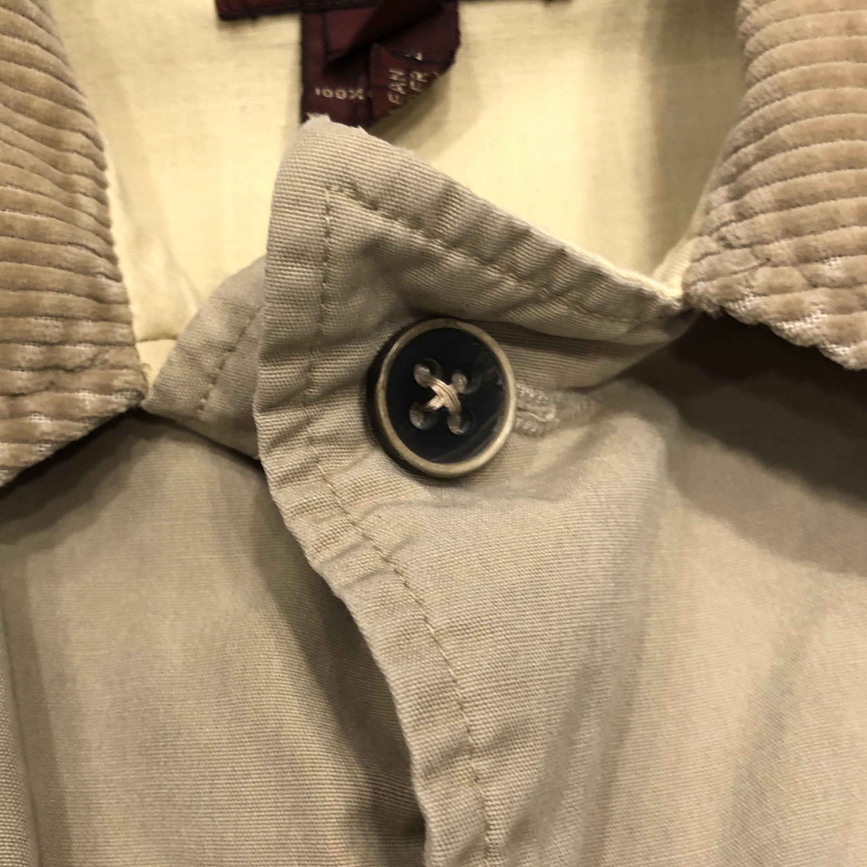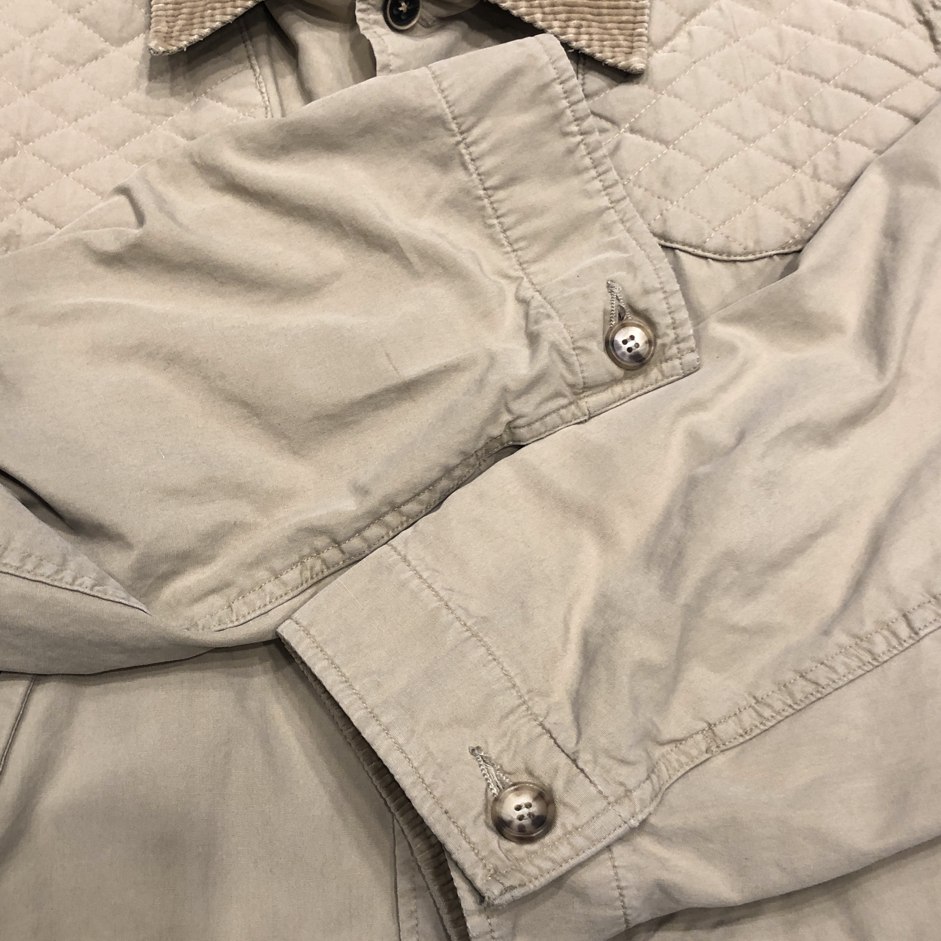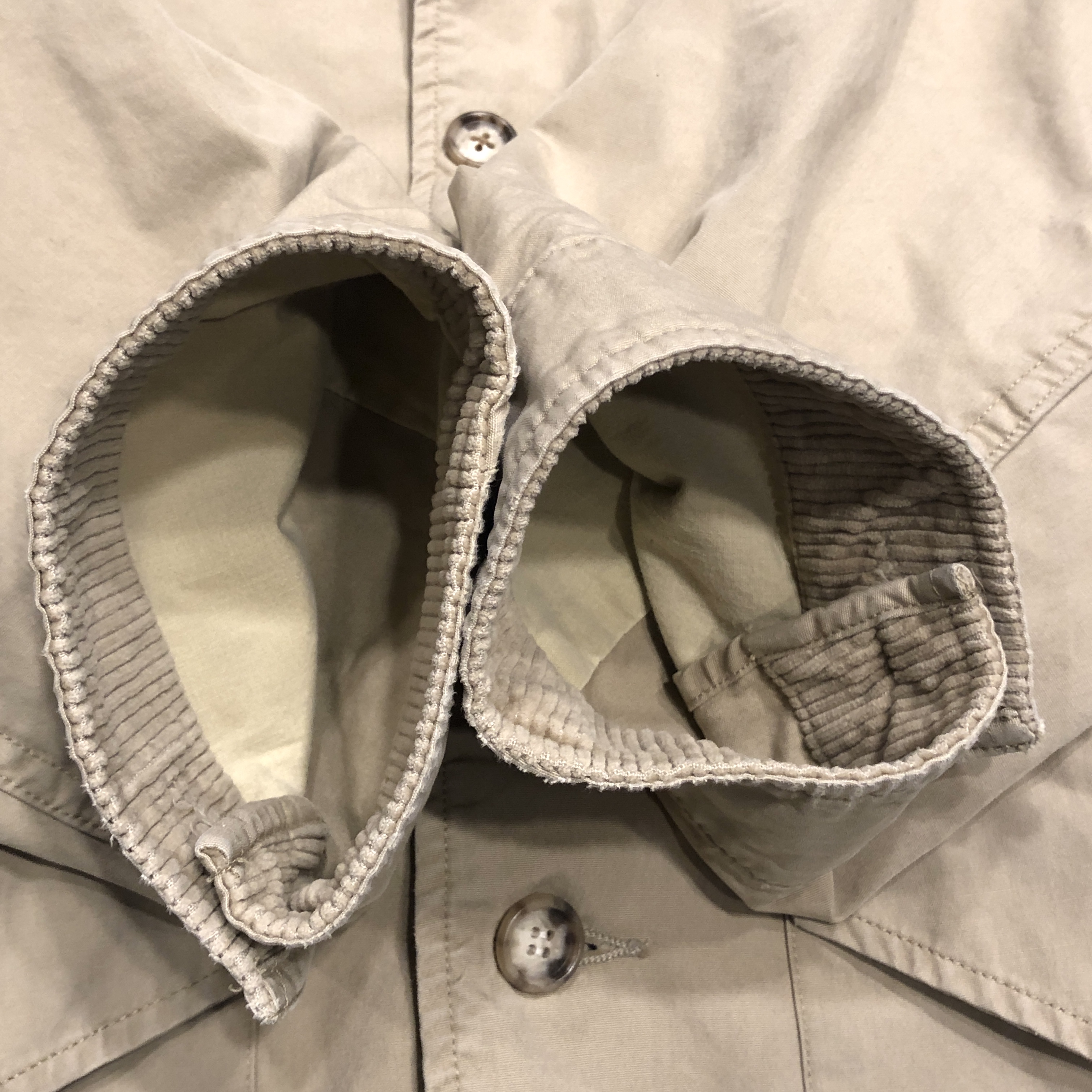 柔らかくもコシのあるコットンシェルに、コーデュロイ襟、そして肩のキルティング補強パッチ。