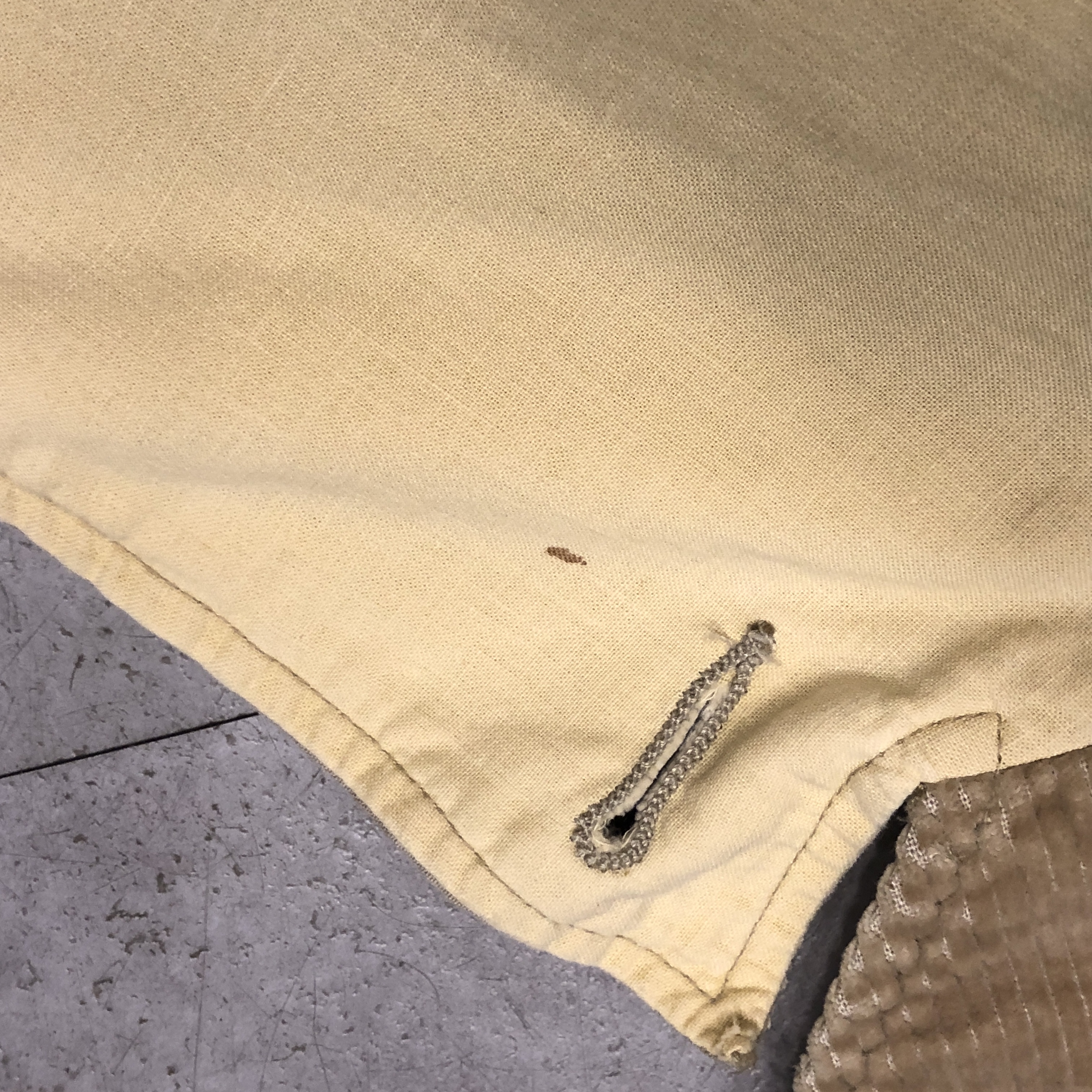 - 年代相応の着用感、スレ、汚れ等が画像の様にございますが、古着慣れされている方でしたら問題なくお使いいただける範囲です。第1ボタンが替えられています。