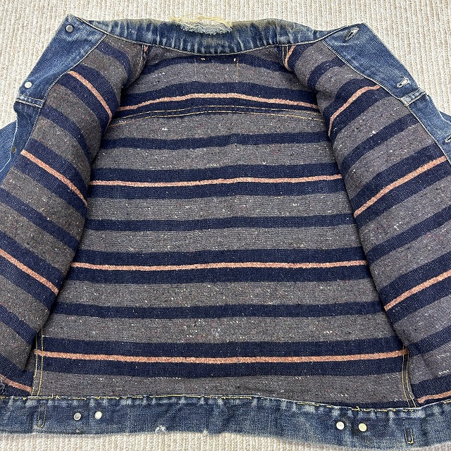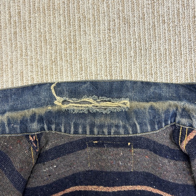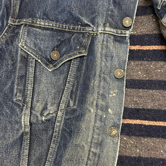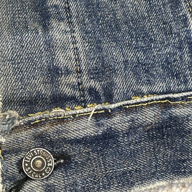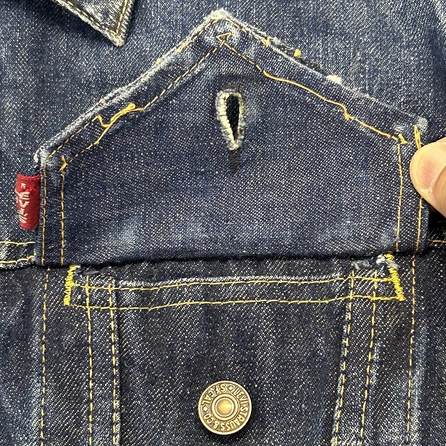 ボタン裏刻印『無刻印ツブツブ』、均等V、胸ポケットフラップ裏 ライトオンスデニム、