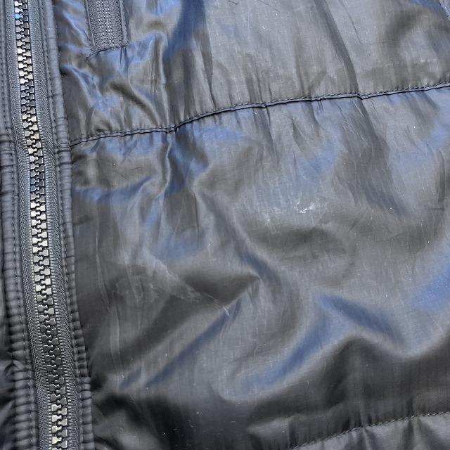 - 左袖先付近に画像のようなリペア、フード付け根付近に小穴がみられます。また、所々に薄汚れがみられます。その他、スレ、アタリ等の着用感がみられ、ユーズド慣れされた方におすすめの商品です。