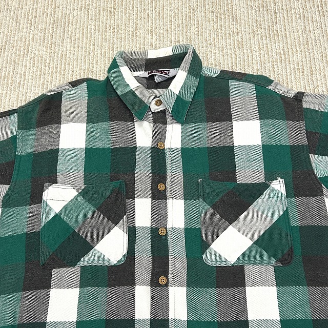 「USA製、グリーン×グレー×ホワイトチェック、XL」