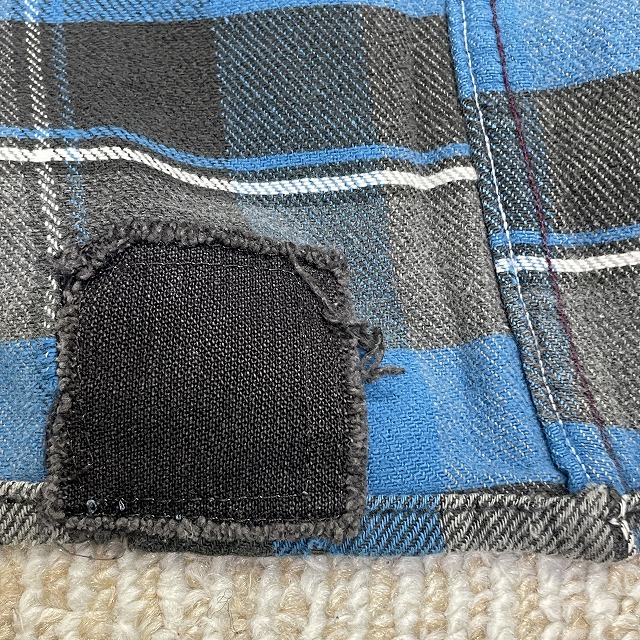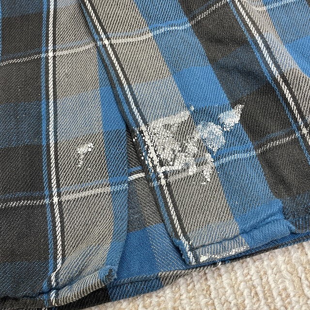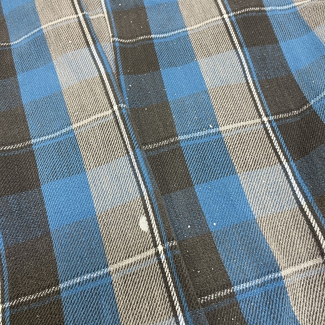 「ブルー×グレーチェック、ペンキ、サイズL」