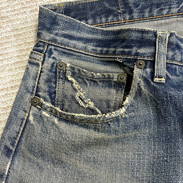 「Vステッチ、ウェストシングル、ダメージ&リペア、実寸W32 L28」