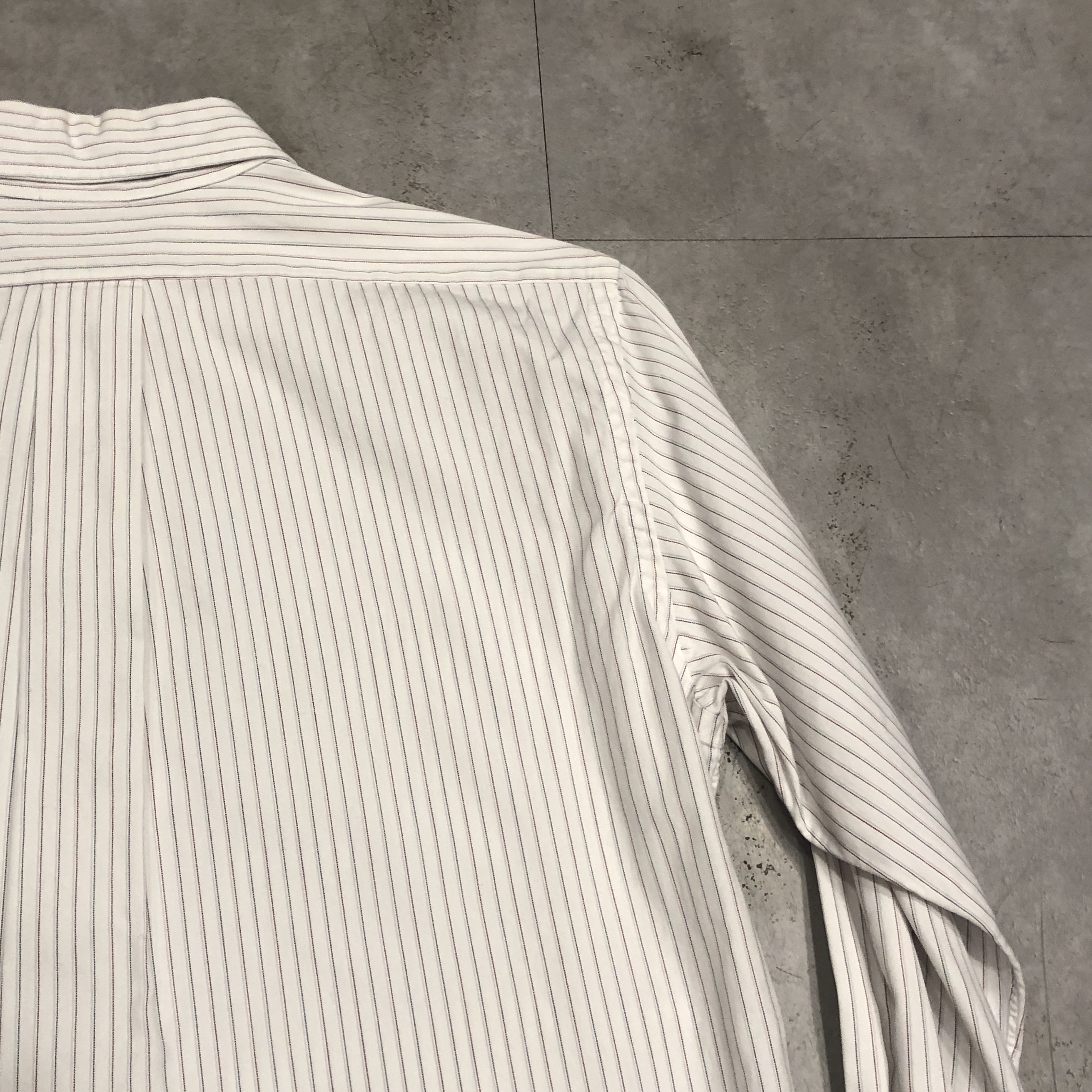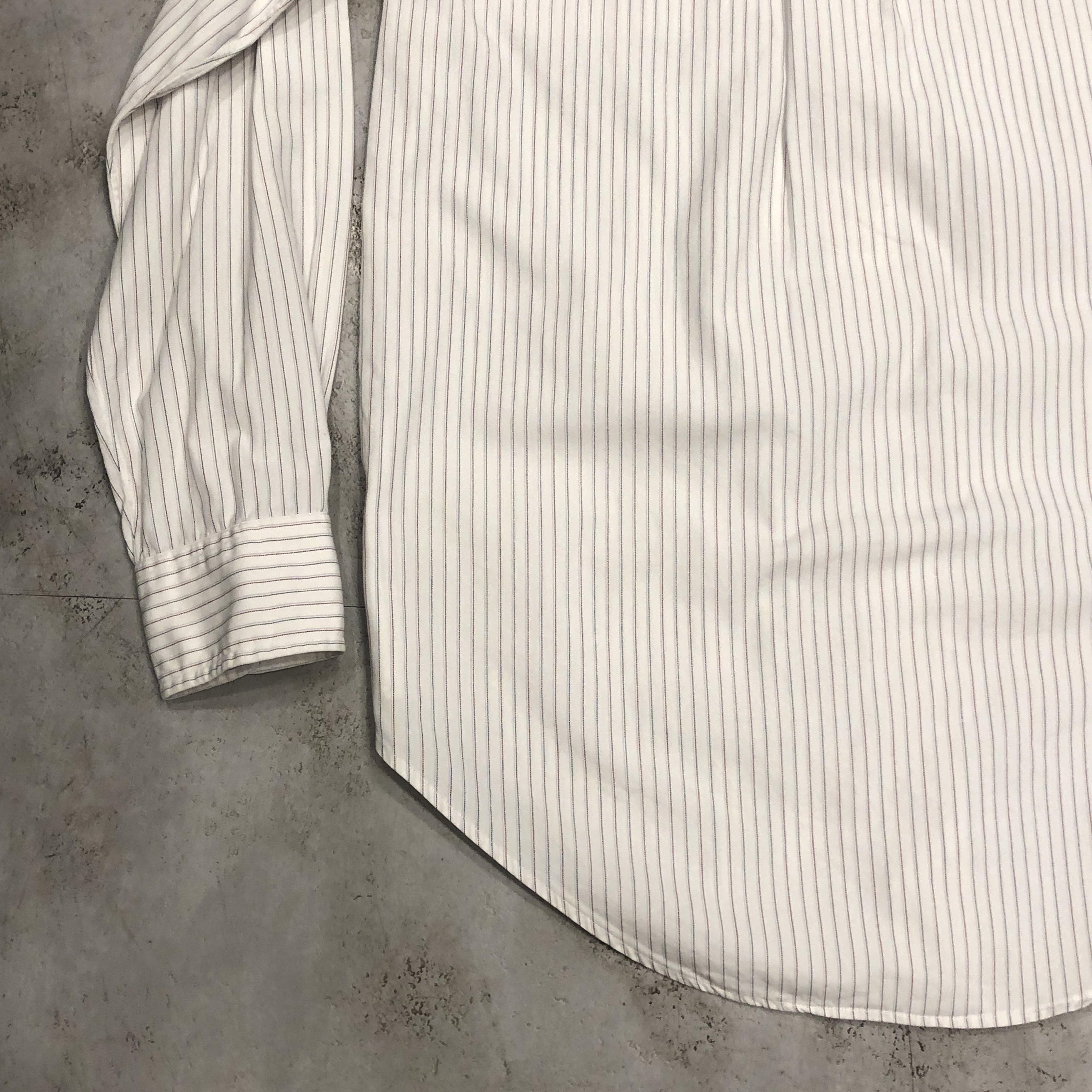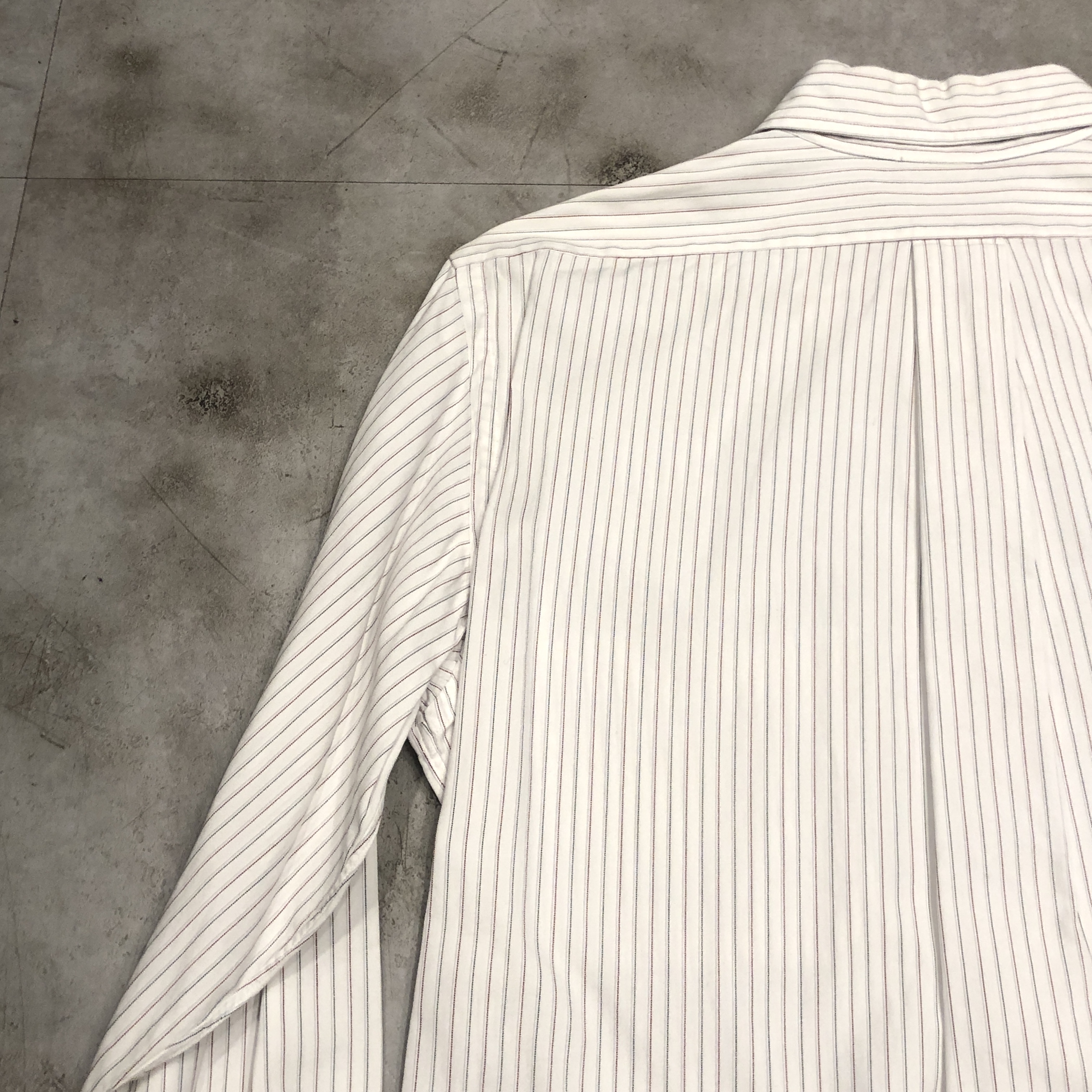 ホワイトのベースに走る繊細なストライプは、ドレスとワークの中間に位置する絶妙な表情。ブロード寄りのしなやかなコットン生地は肌触りが良く、通年で活躍する実用性も備えています。