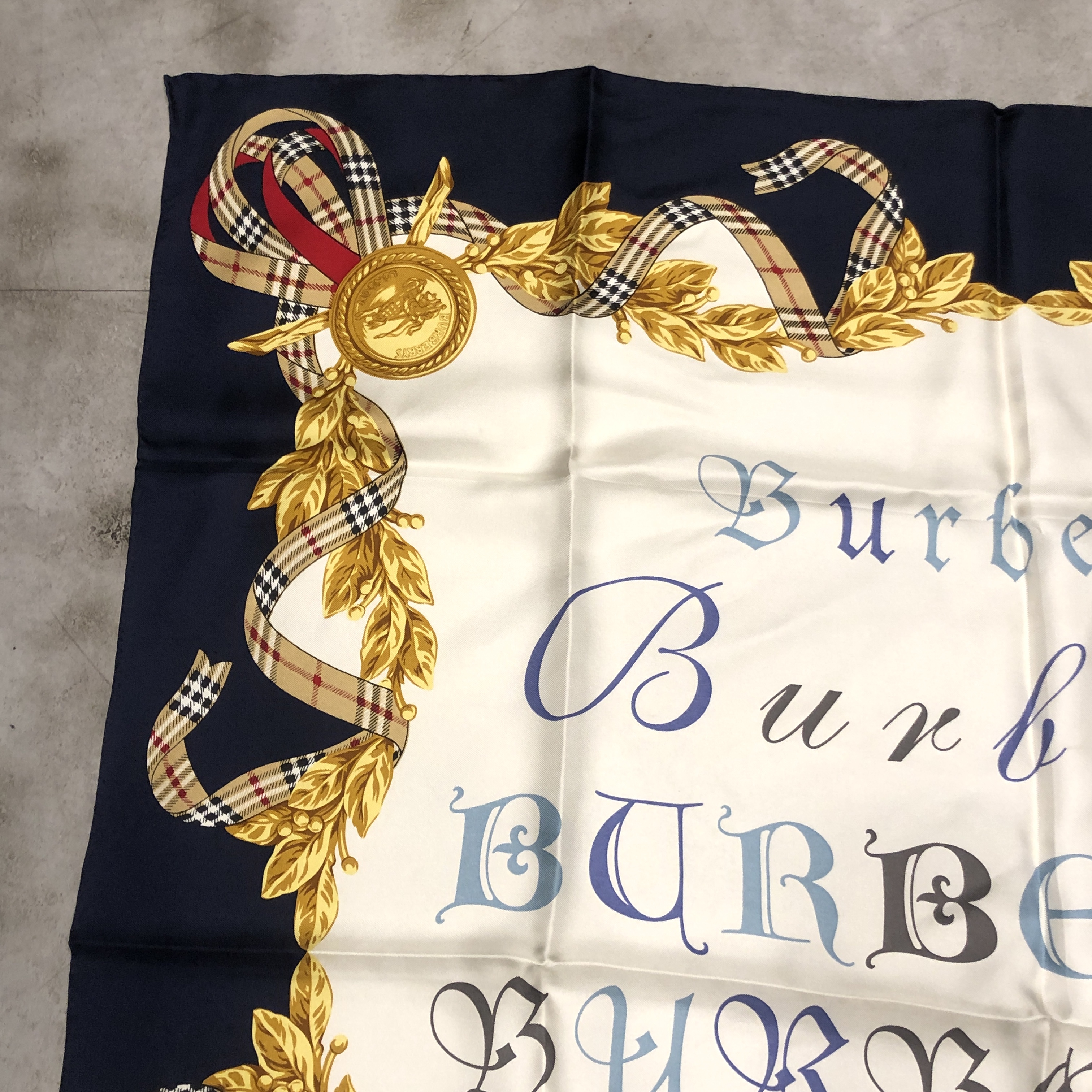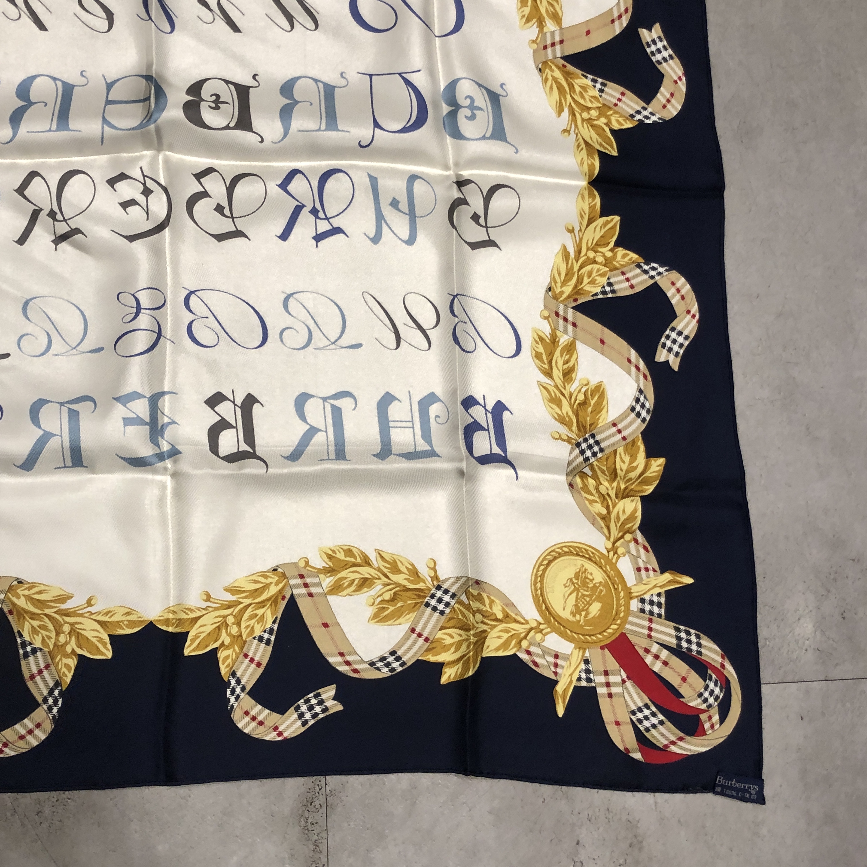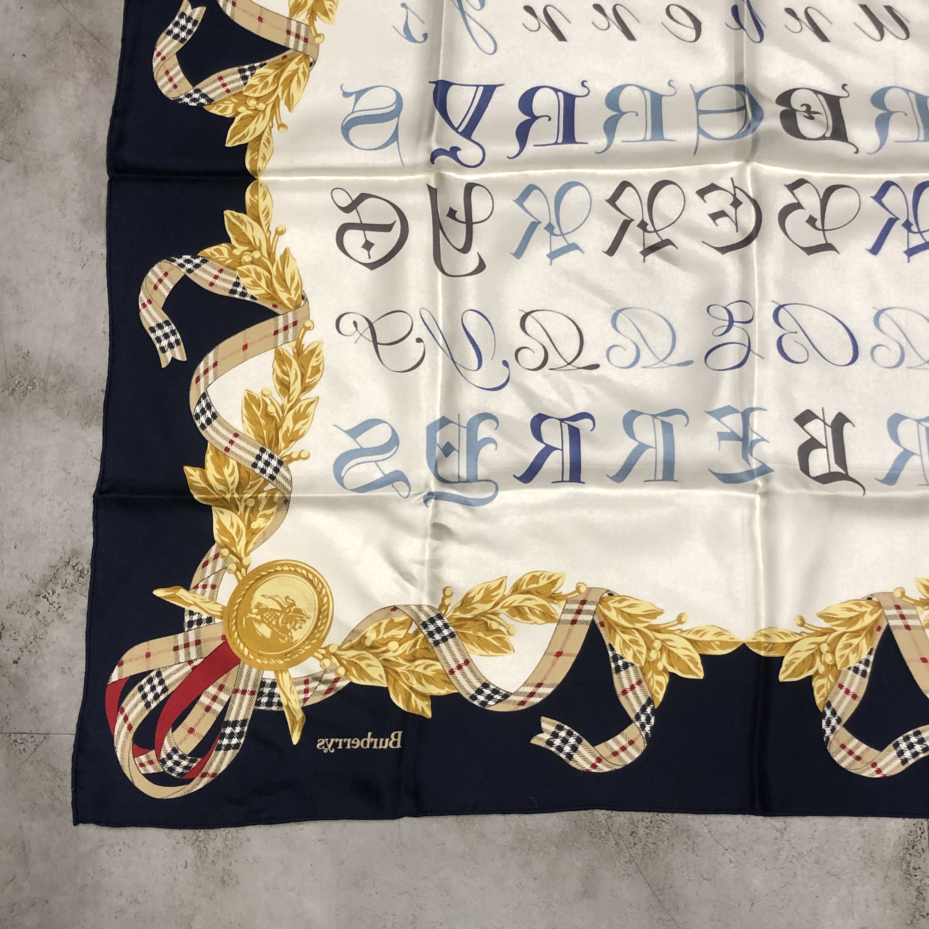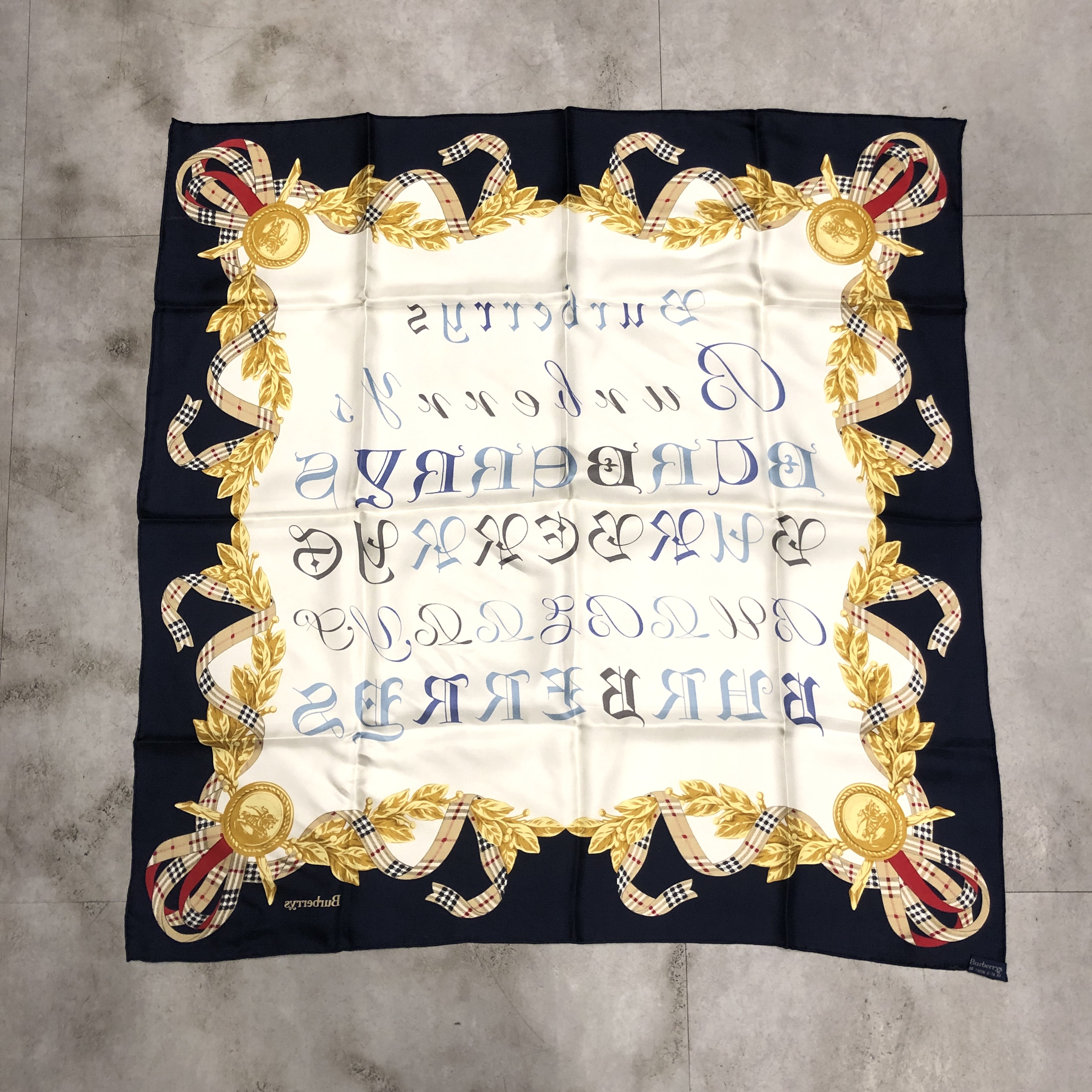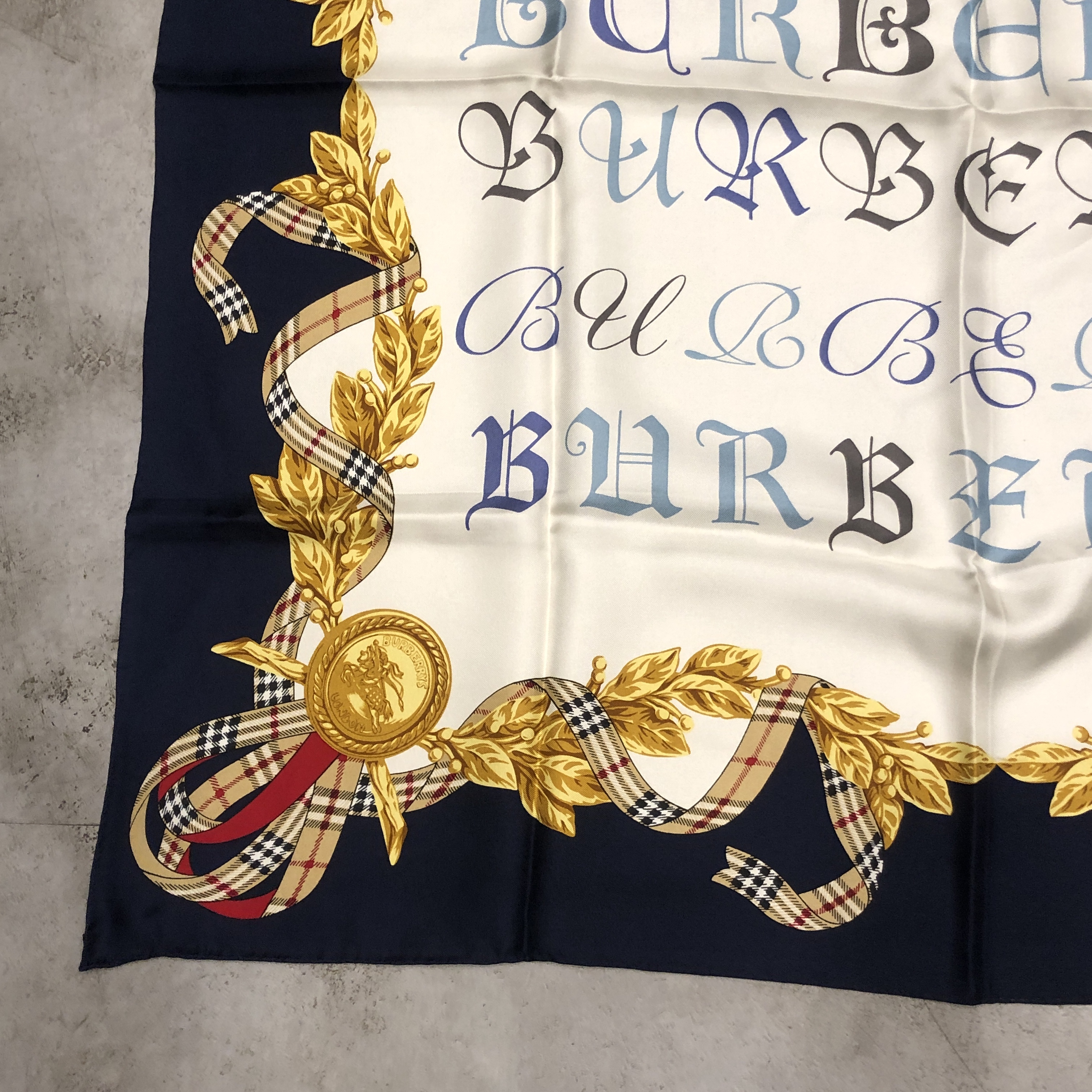 中央には多様な書体で表現された“BURBERRYS”ロゴ。
