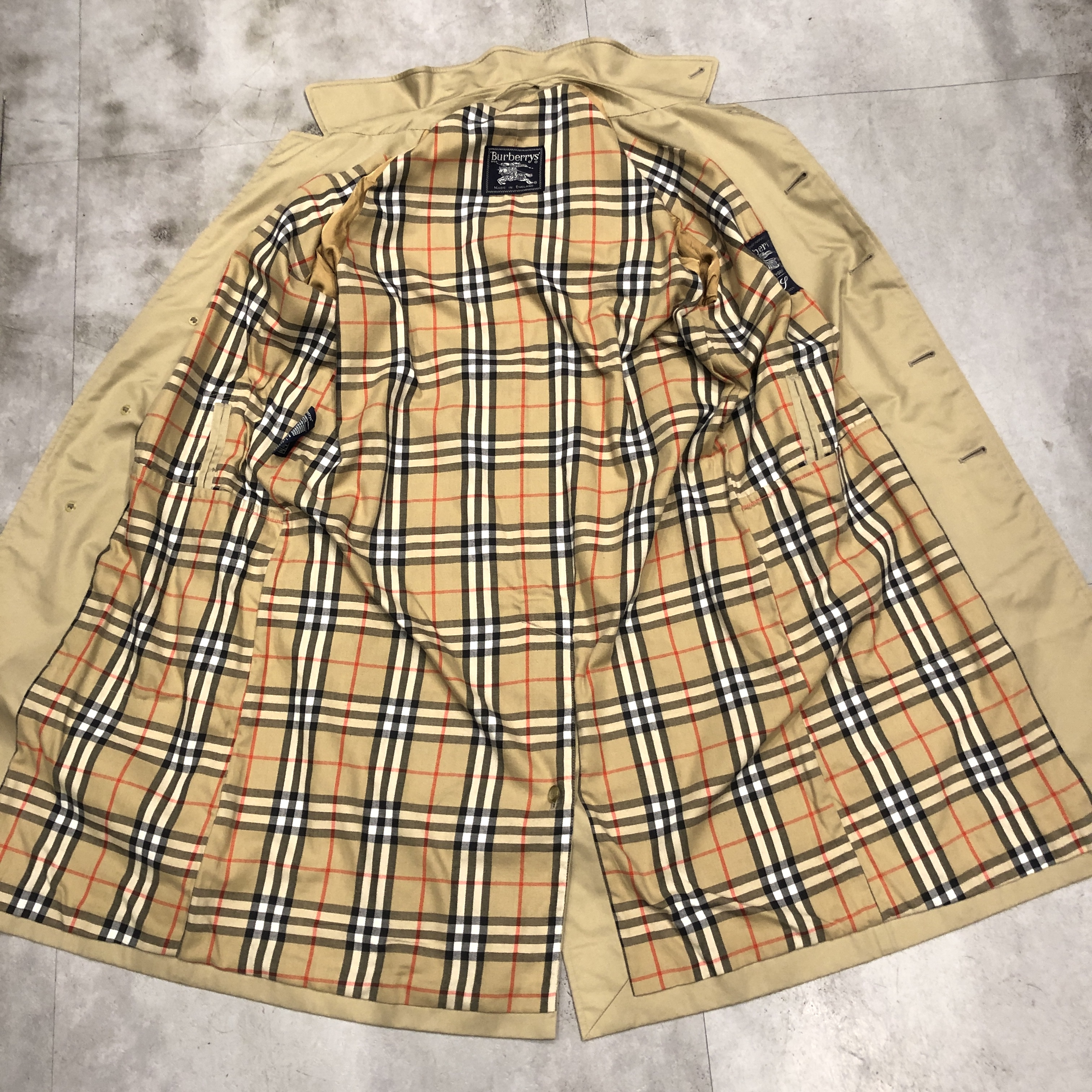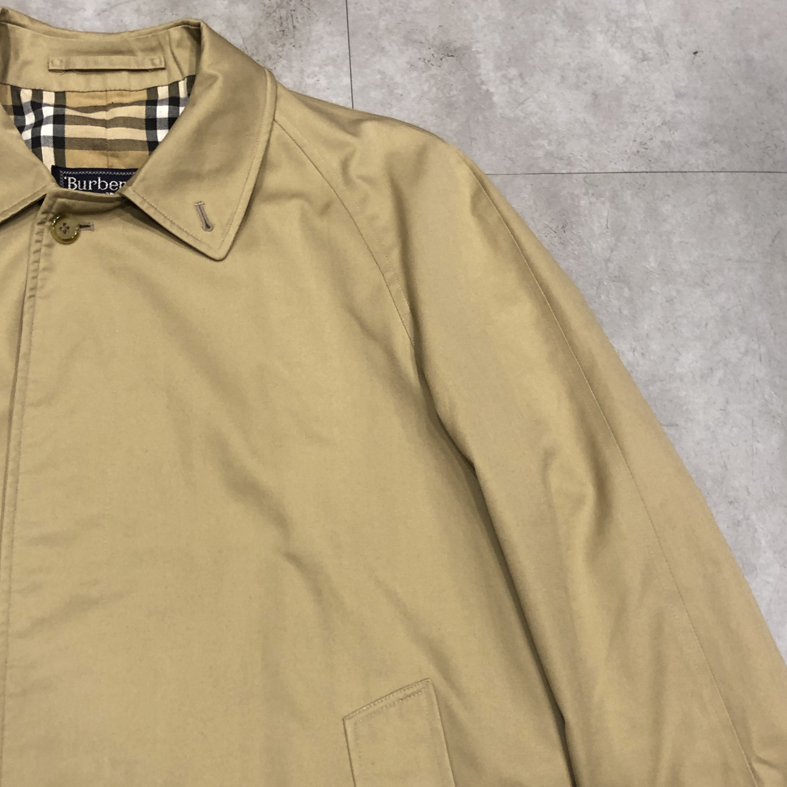 表面・裏地ともに経年による風合いを楽しめるコンディションで、“育てる楽しみ”も含めて味わえる一着です。肩肘張らず、カジュアルな日常着としても使える名品。バーバリーズ黄金期の空気を纏う、コレクション性の高い一枚をぜひお楽しみください。