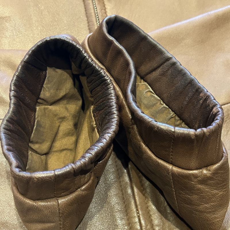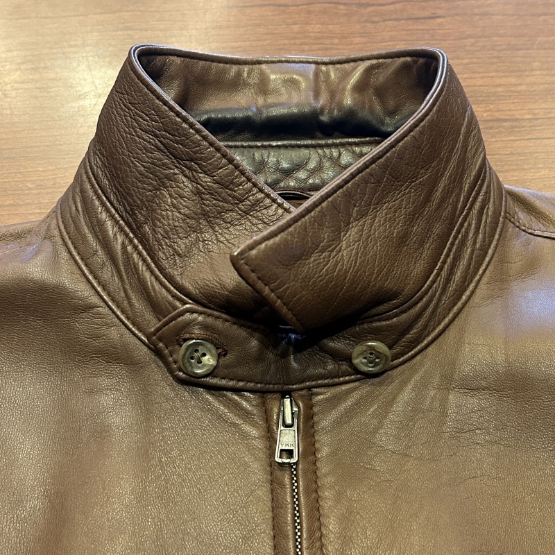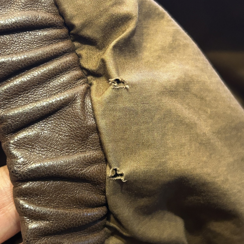 - レザー特有の傷やシワ、黒ずみ、裏地にダメージが複数箇所ございます。その他に目立つ汚れやダメージ等は無く、古着慣れされた方でしたら問題無く着用していただける状態です。