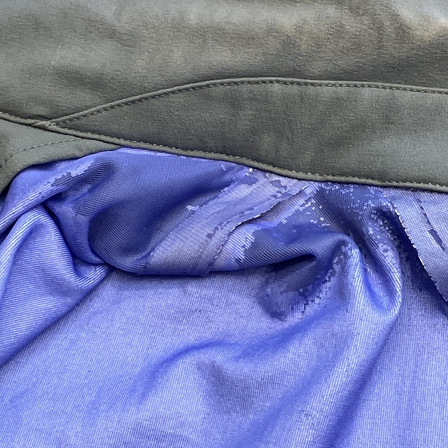 - 襟元に変色、内側部分の剥離、テープの剥がれ等の劣化が見られます。画像でご確認ください。