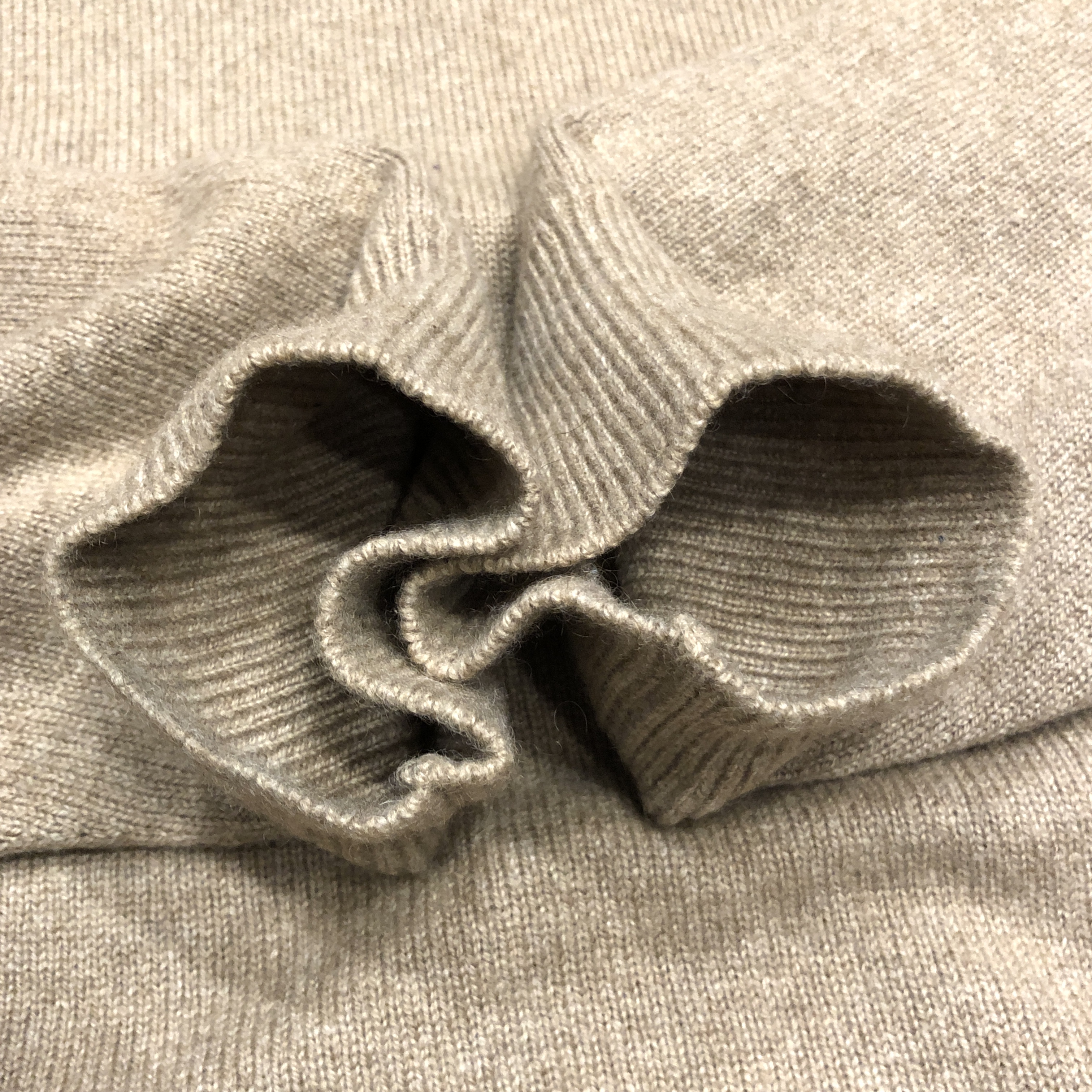 落ち着いたキャメルベージュの色味は、ジャケットのインナーとして、デニムと合わせた上品なカジュアルスタイルに、あるいはウールスラックスと合わせたドレス寄りの装いにも自然に馴染みます。年齢やスタイルを問わず長く寄り添う色合いです。