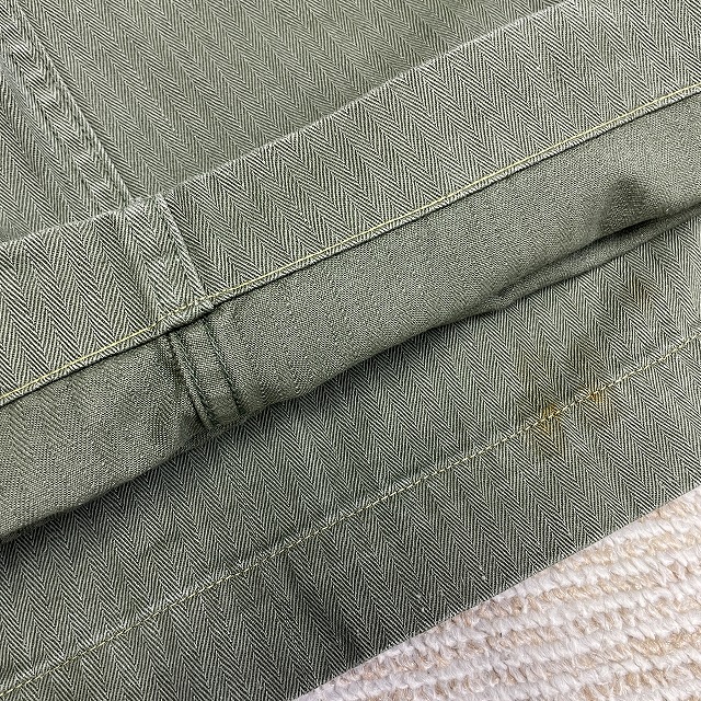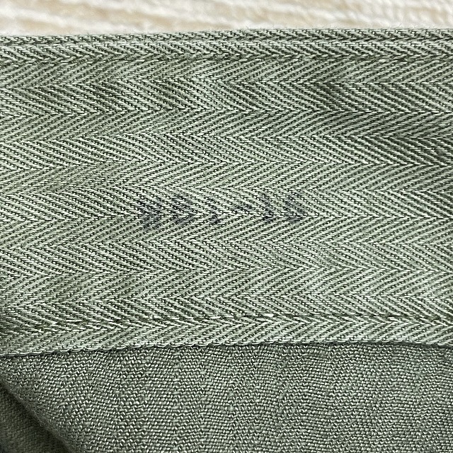 裾上げがされており、ウエストもお直しされておりますのでヒップ部分で縫い直されております。