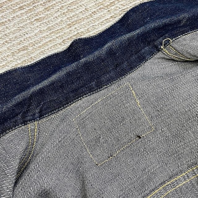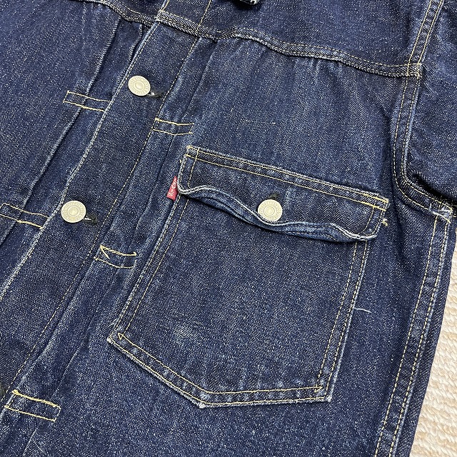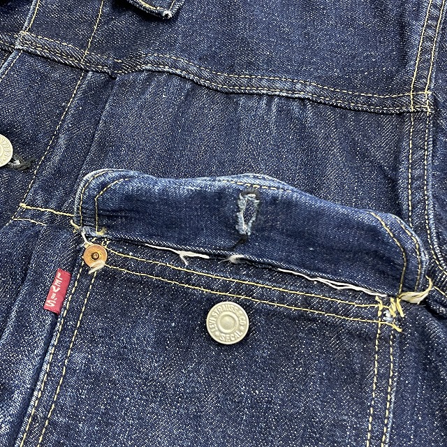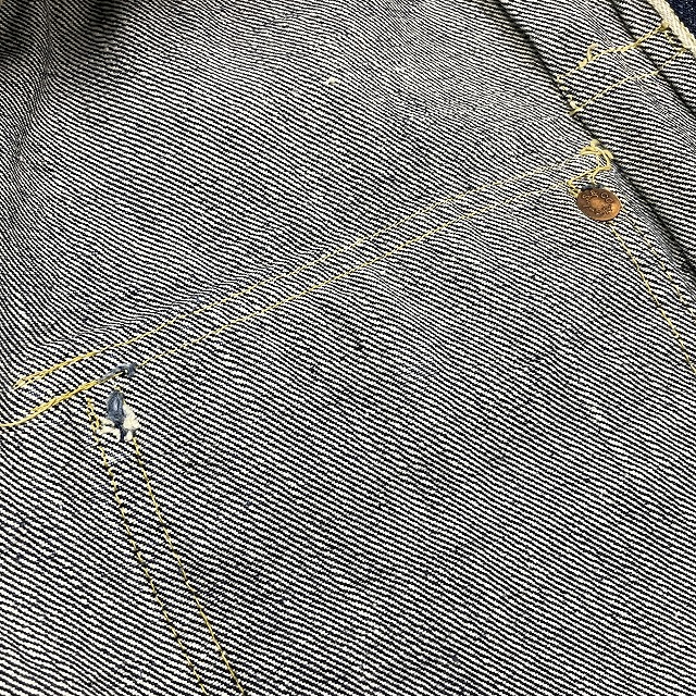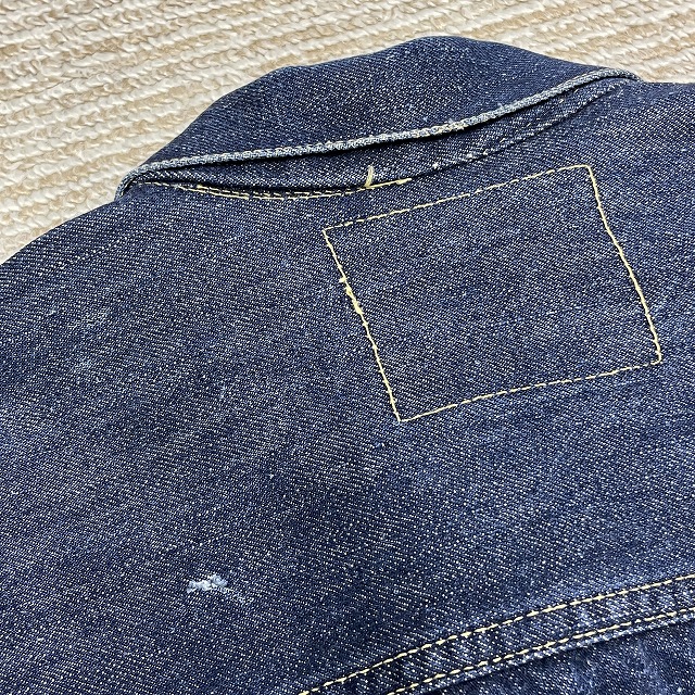 - 画像のように、汚れ、スレ、キズ、アタリがあり、左胸ポケットのリベットと裏側の受けが欠損している箇所がございます。