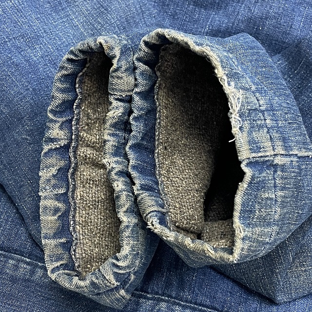 前裾や袖口に手縫いで簡易的なリペアがございます。